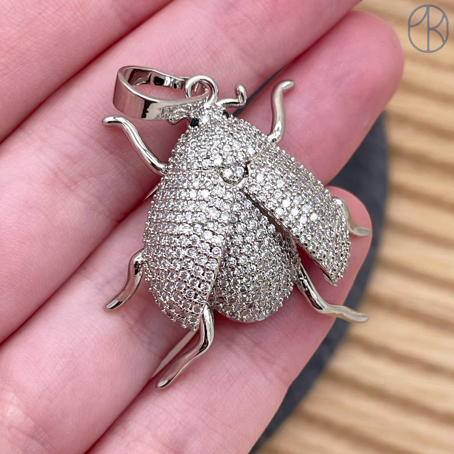 Подвеска жук цирконы, цвет серебро 32 мм
