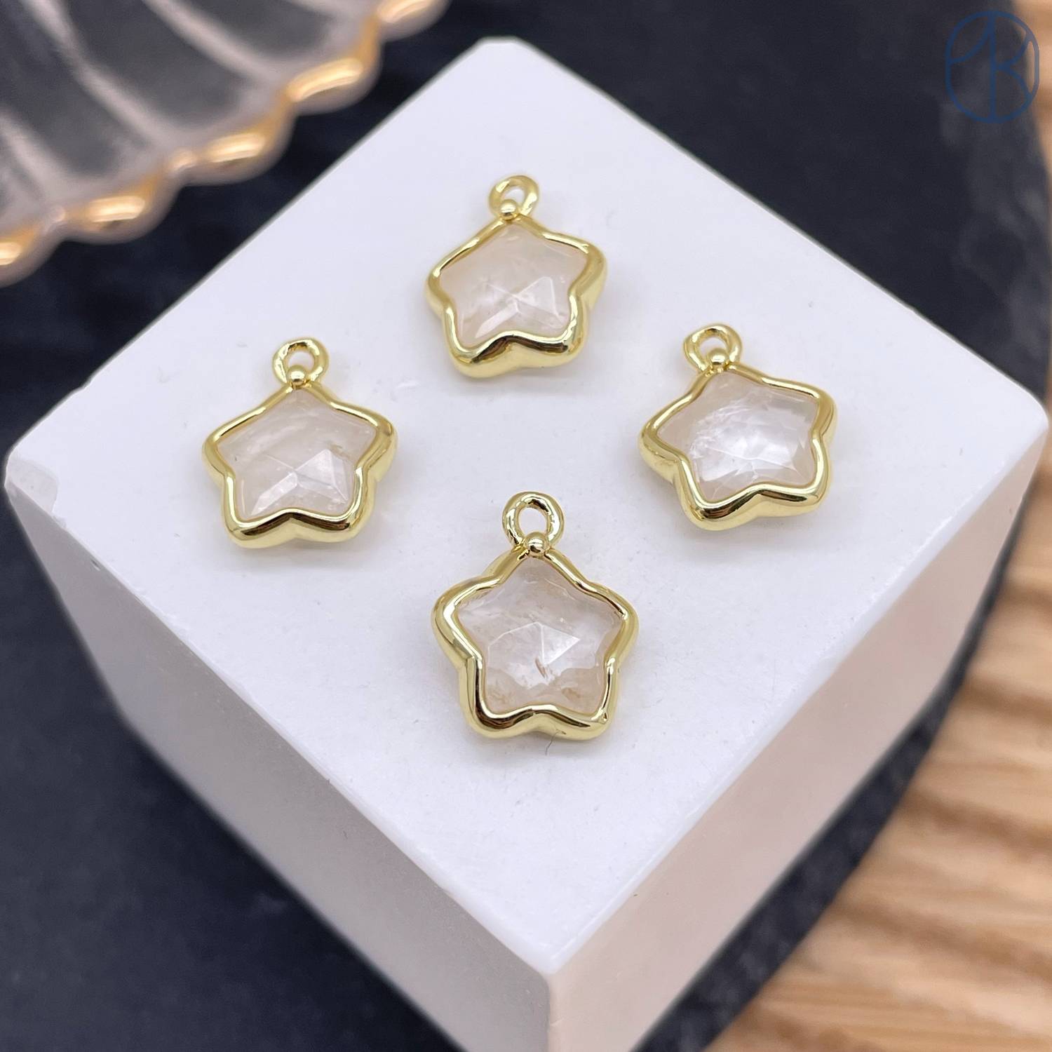 Подвеска звезда горный хрусталь, цвет золото 12 мм