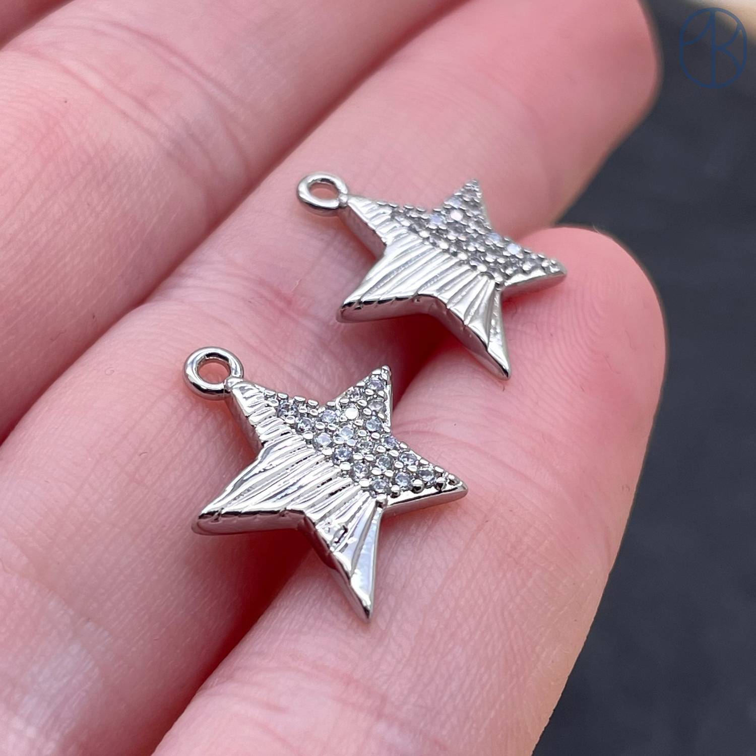 Подвеска звезда цирконы, цвет серебро 14 мм