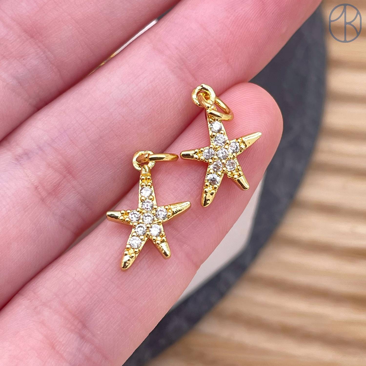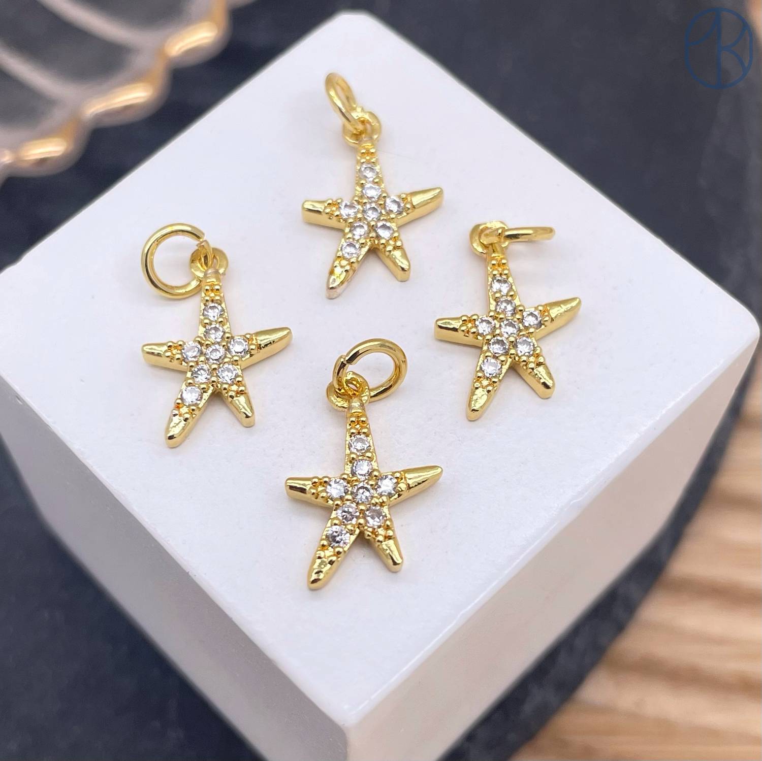 Подвеска звезда цирконы, цвет золото 10 мм