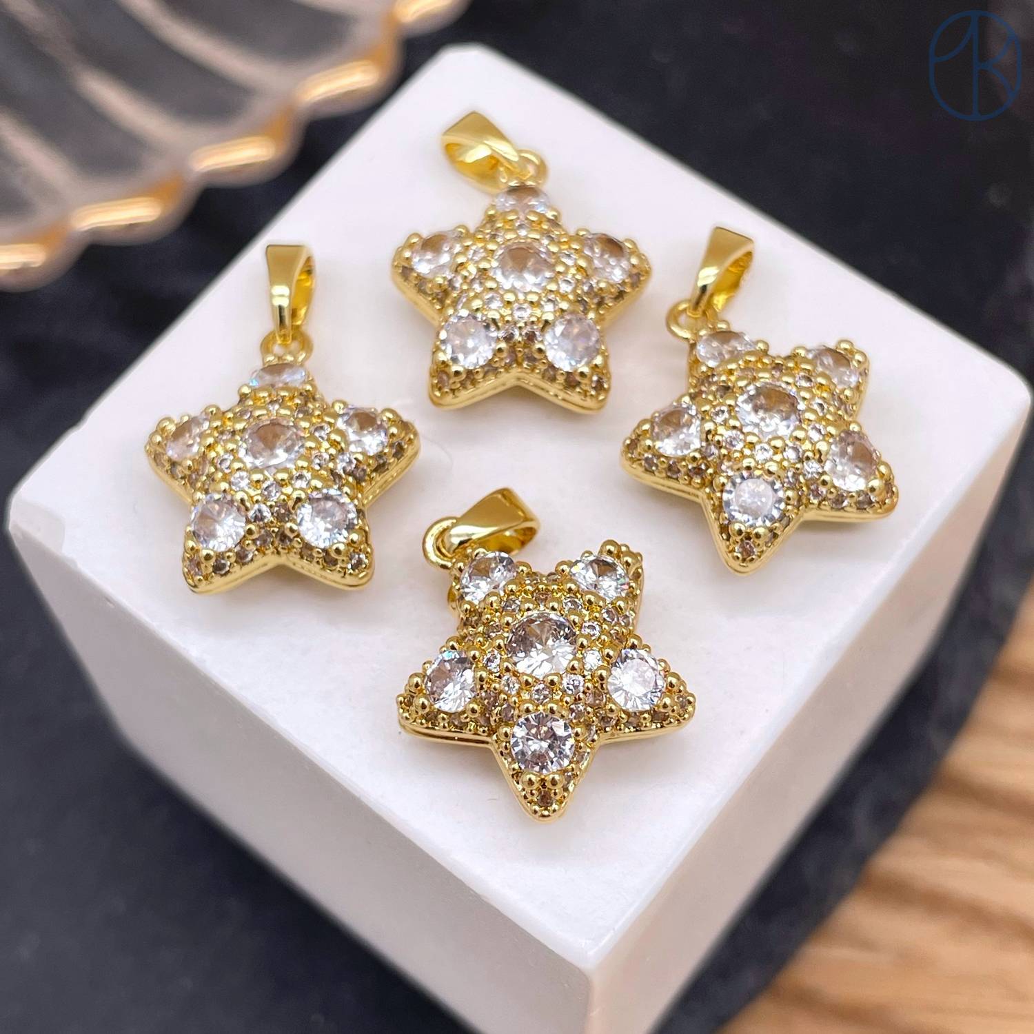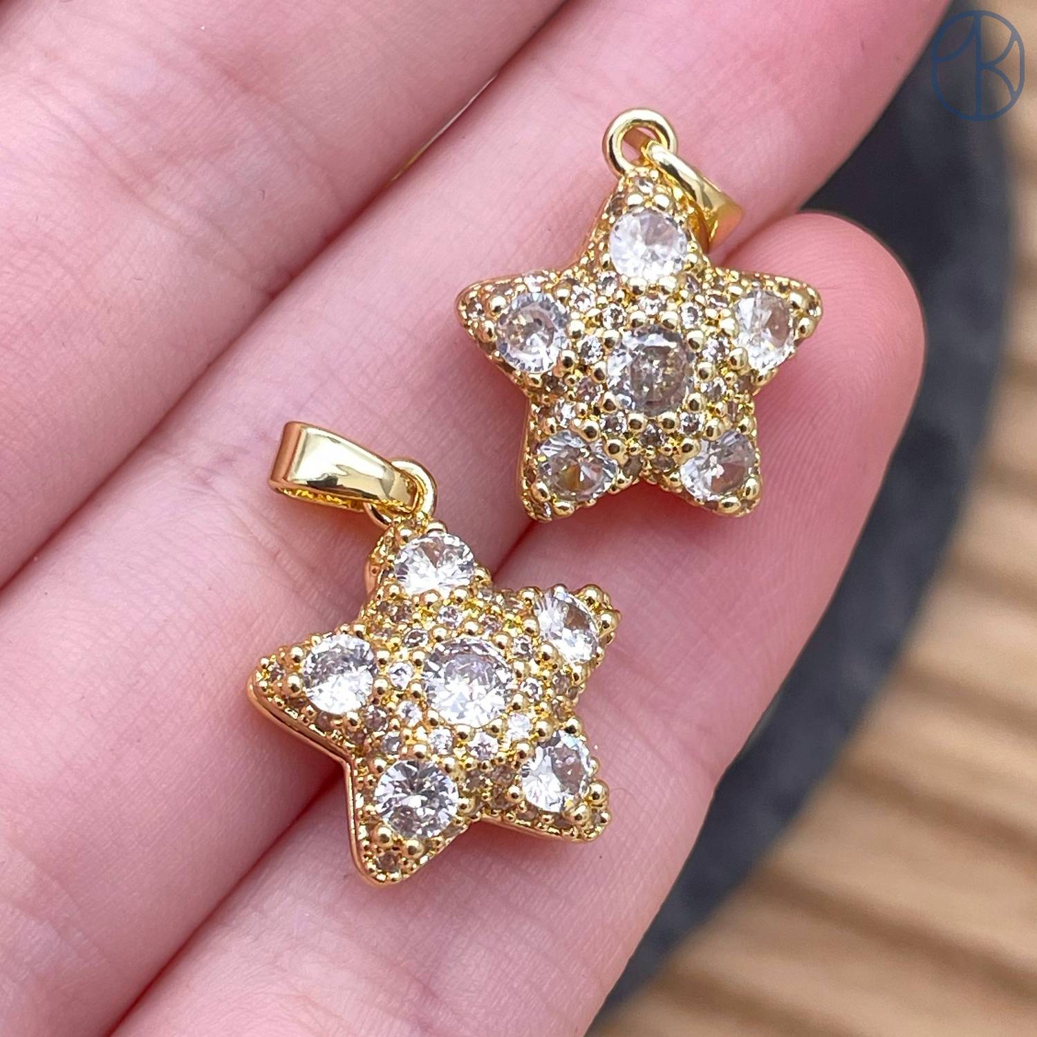 Подвеска звезда цирконы, цвет золото 16 мм