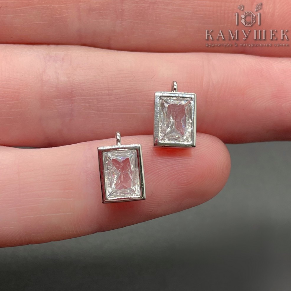10, 5*6, 5мм Цвет серебро, Подвеска прямоугольник большой циркон