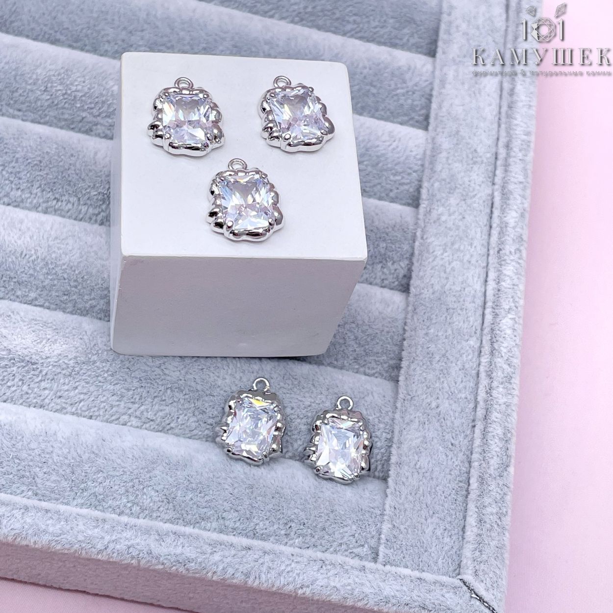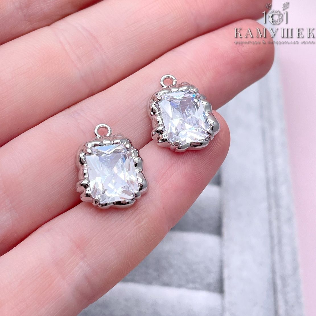 Подвеска фриформ прямоугольник циркон, цвет серебро 12х6