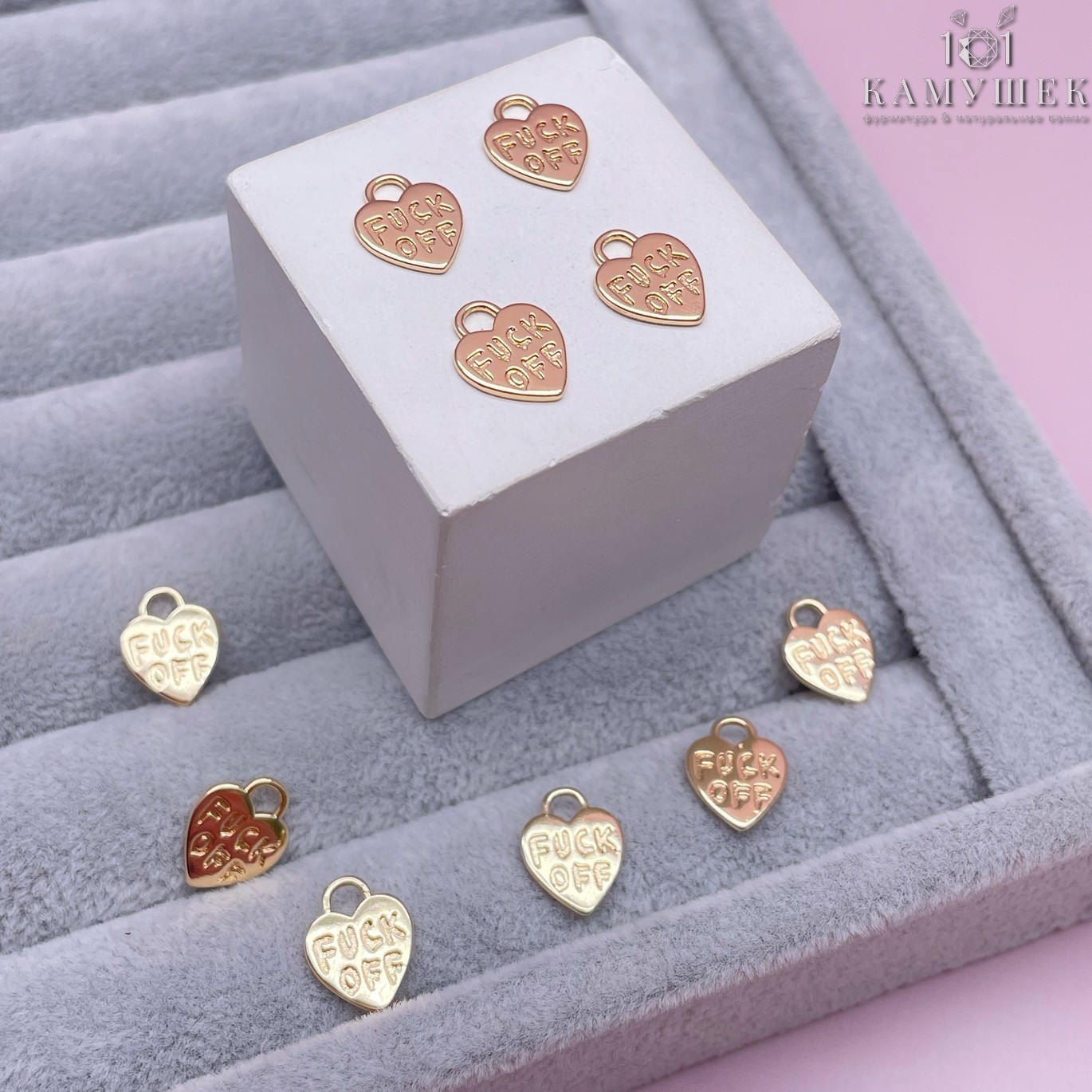 Подвеска сердце fuck off, цвет золото 12х9 мм