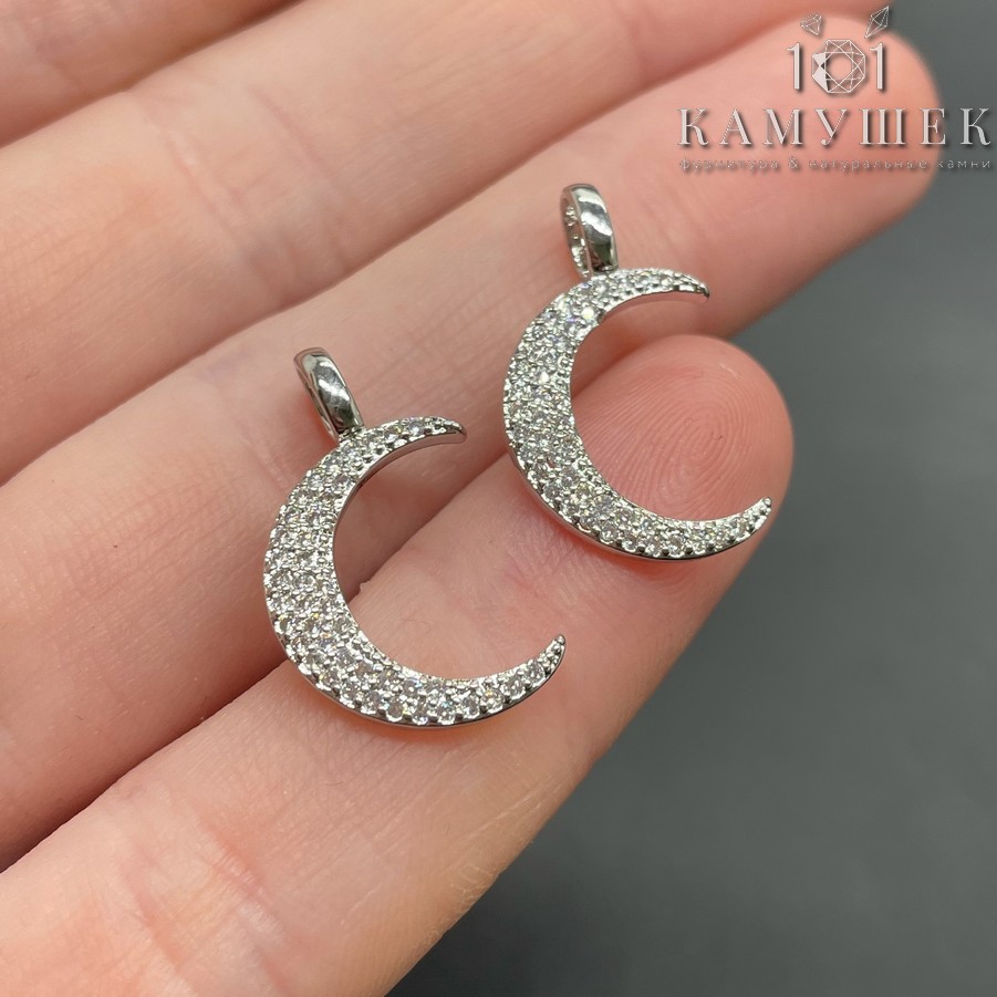 Подвеска полумесяц цирконы, цвет серебро 22х13 мм