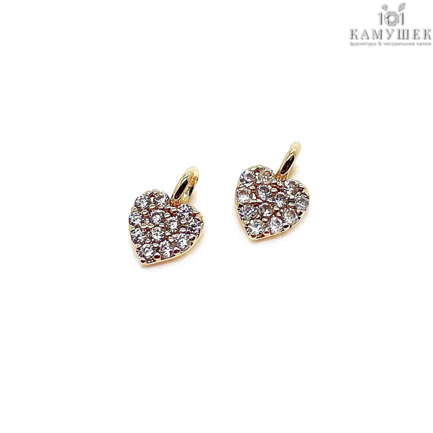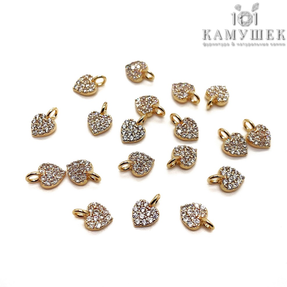 Подвеска мини сердце цирконы, цвет золото 5х7 мм