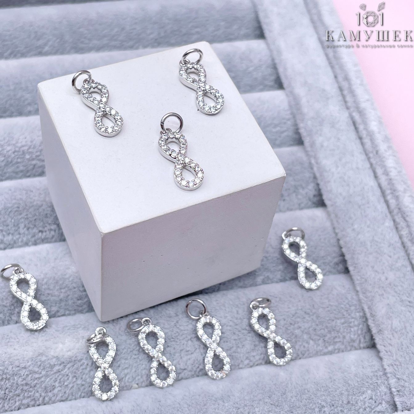 Подвеска бесконечность цирконы, цвет серебро 16х6 мм