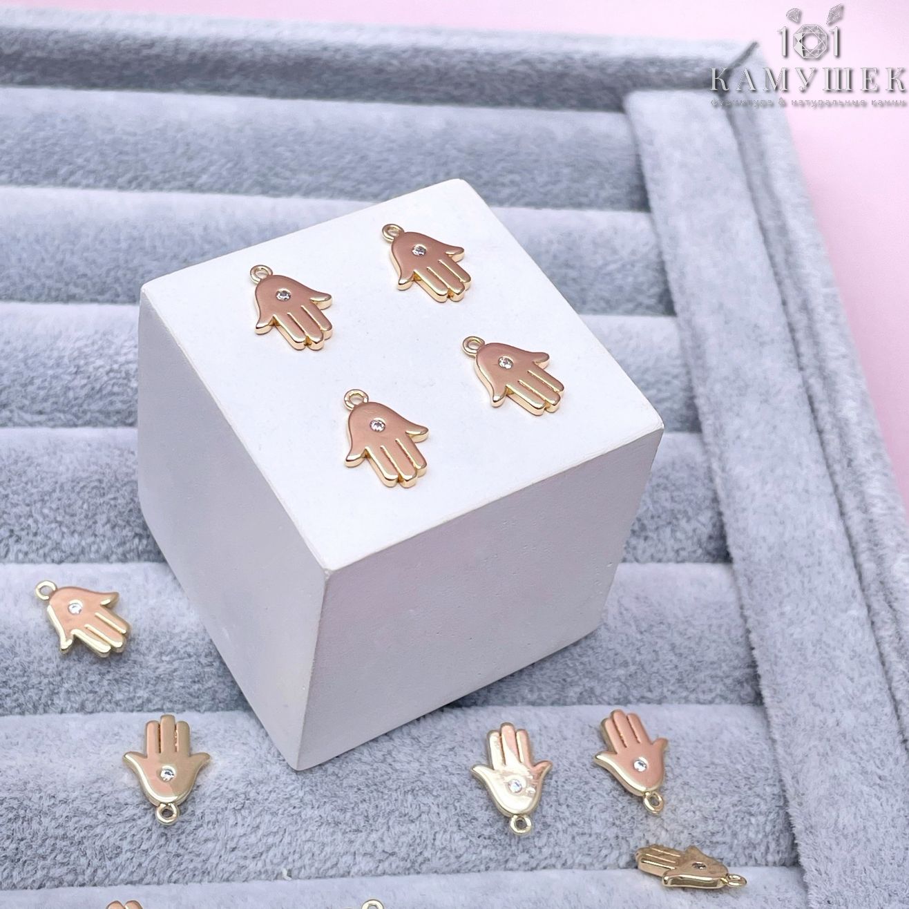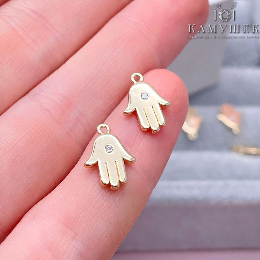 Подвеска Рука Фатимы с цирконом, цвет золото 12х9 мм
