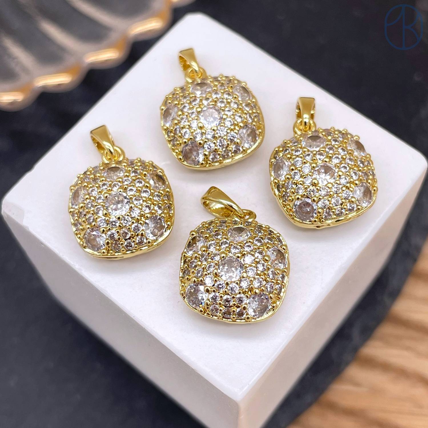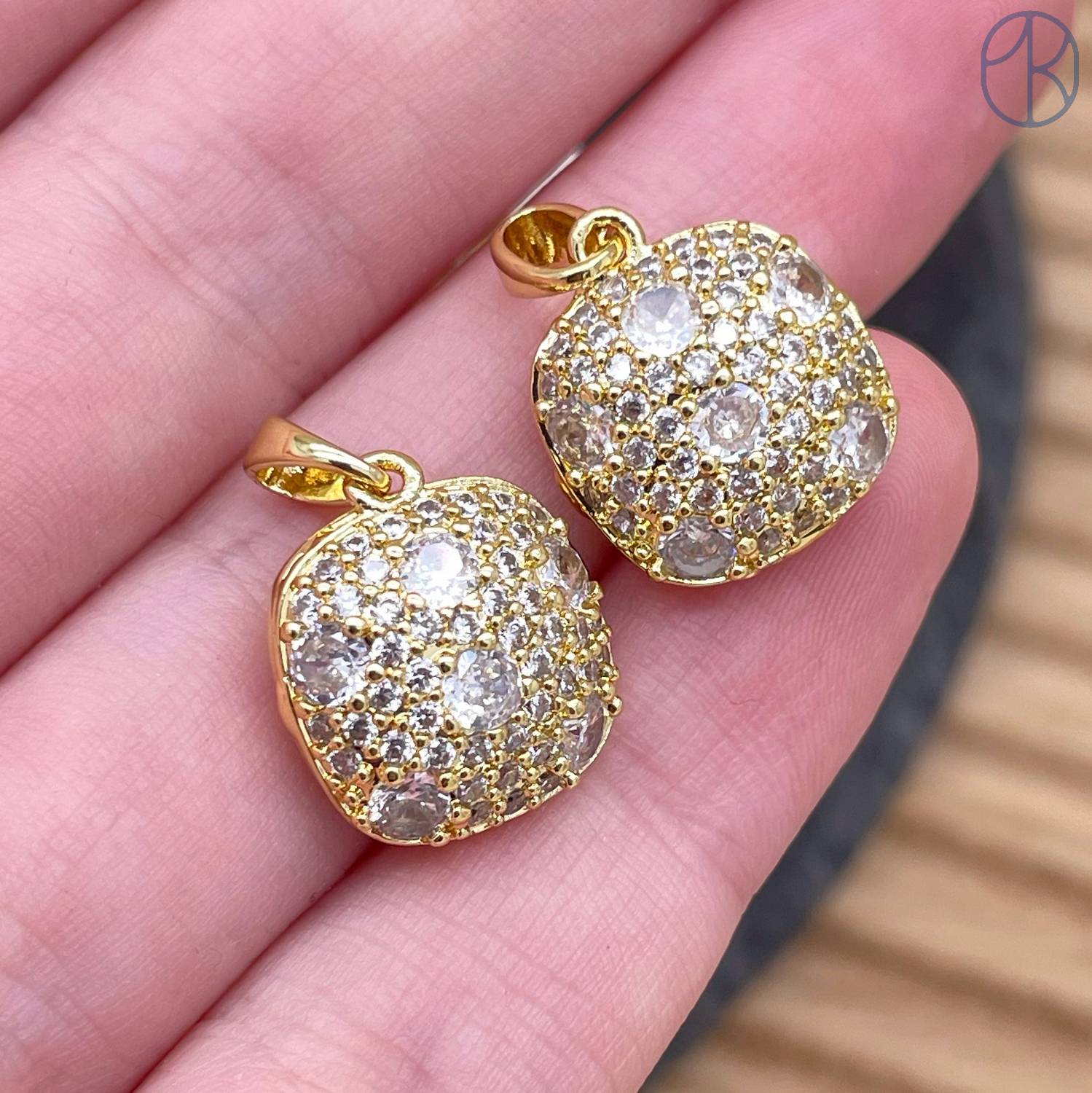 Подвеска квадрат цирконы, цвет золото 13 мм