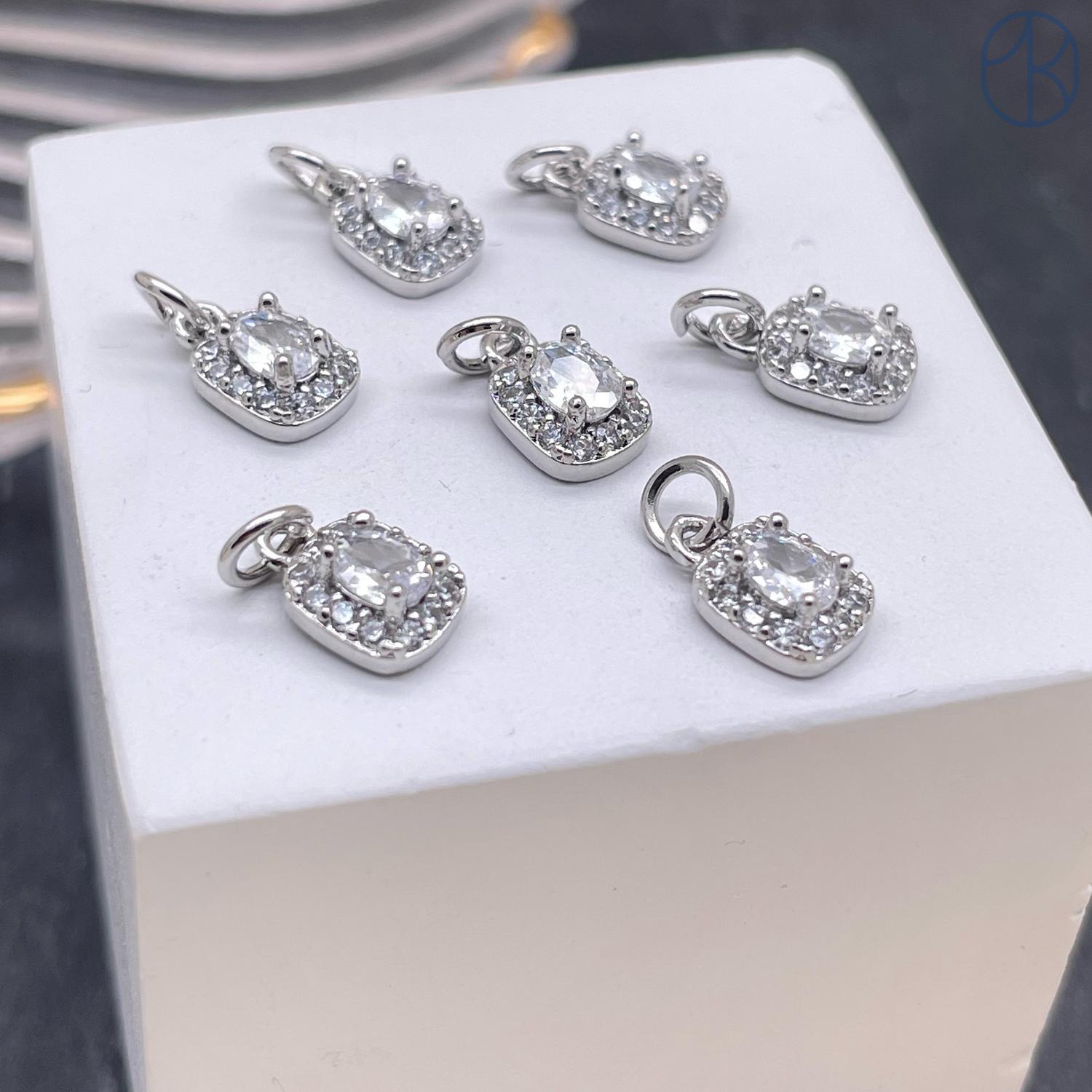 Подвеска прямоугольник циконы, цвет серебро 7х5 мм