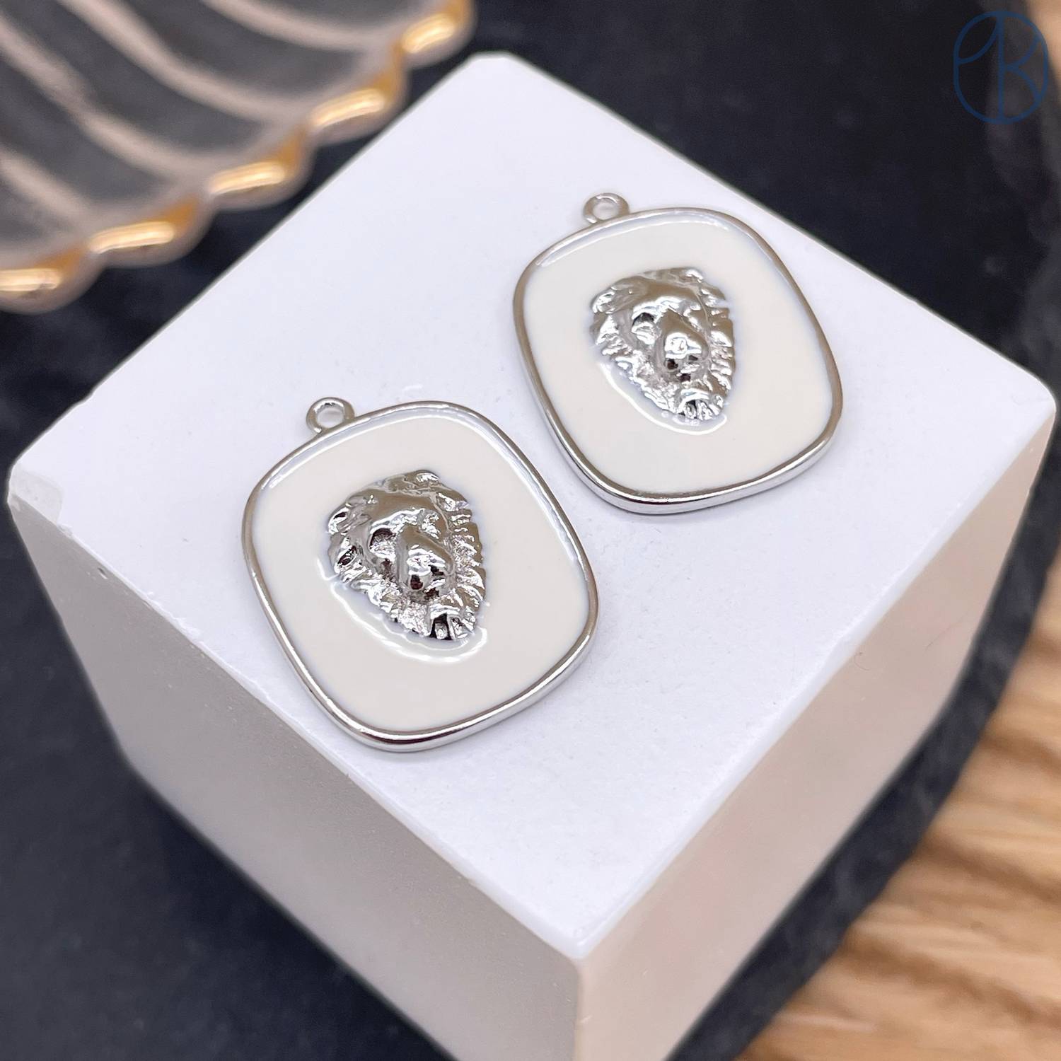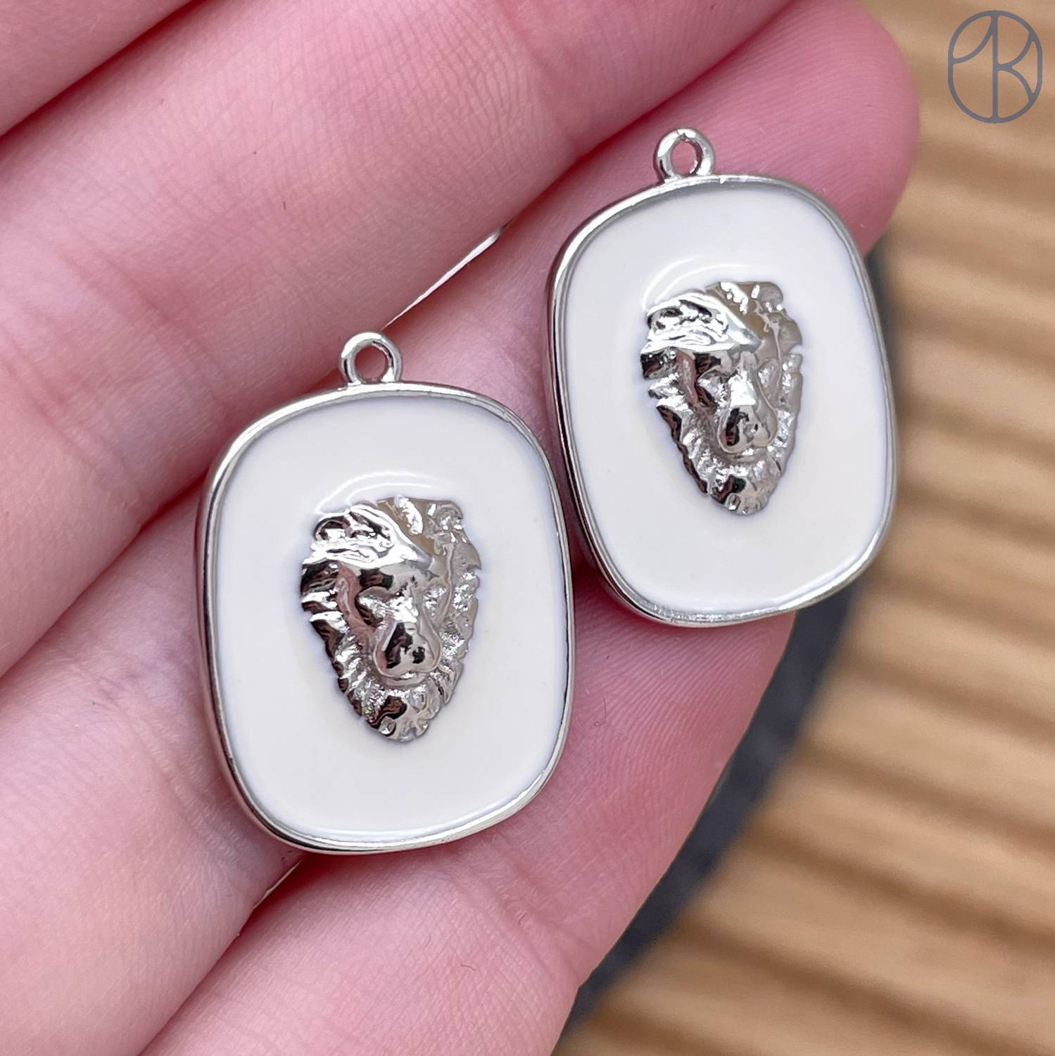 Подвеска лев квадрат белая эмаль, цвет серебро 22х16 мм