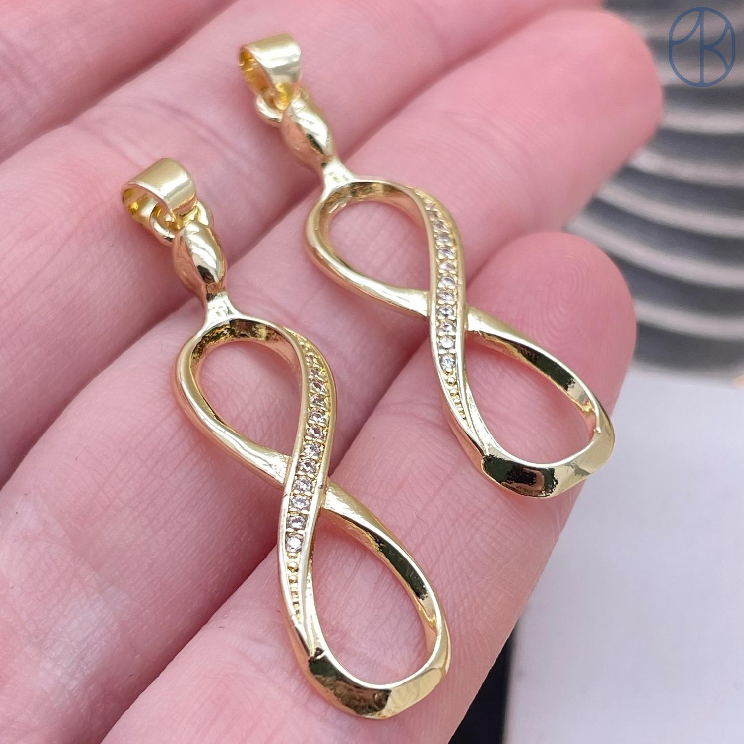 Подвеска бесконечность цирконы, цвет золото 35х9 мм