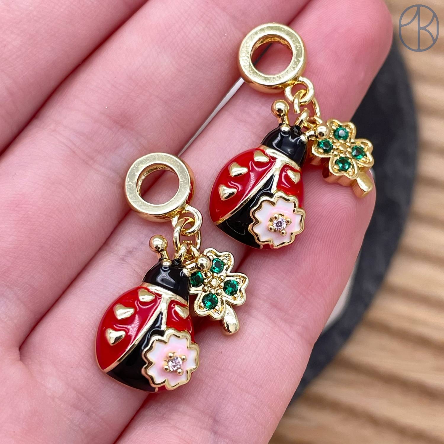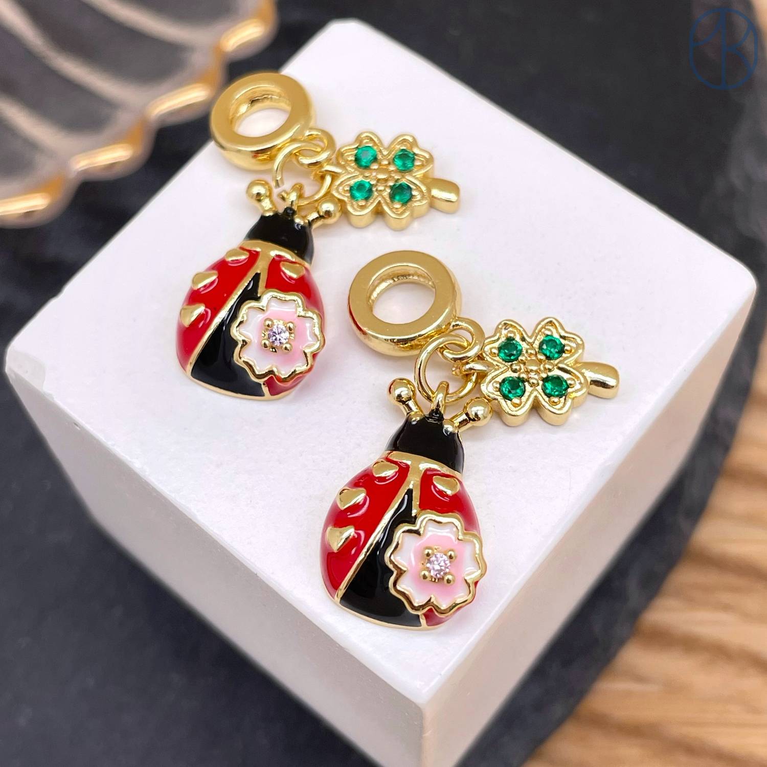 Подвеска божья коровка и клевер, цвет золото 17 мм