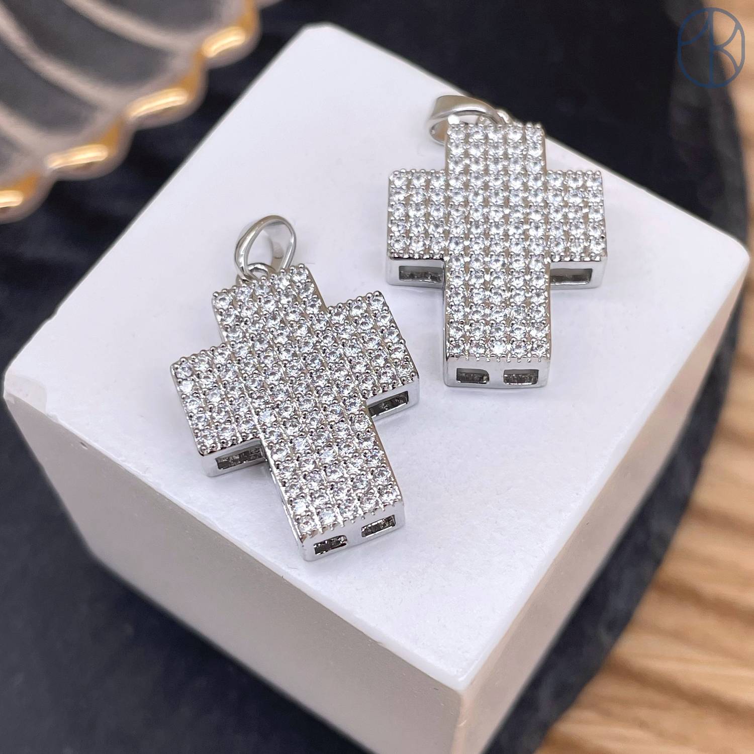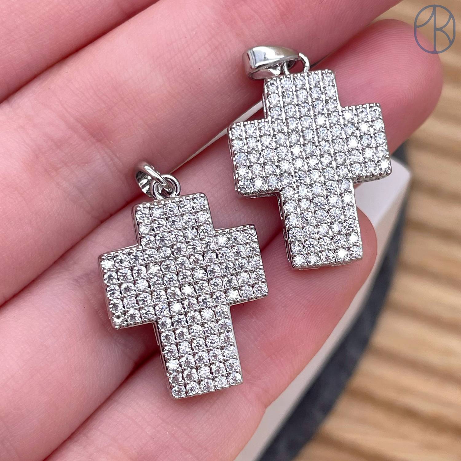 Подвеска крест цирконы, цвет серебро 19х15 мм
