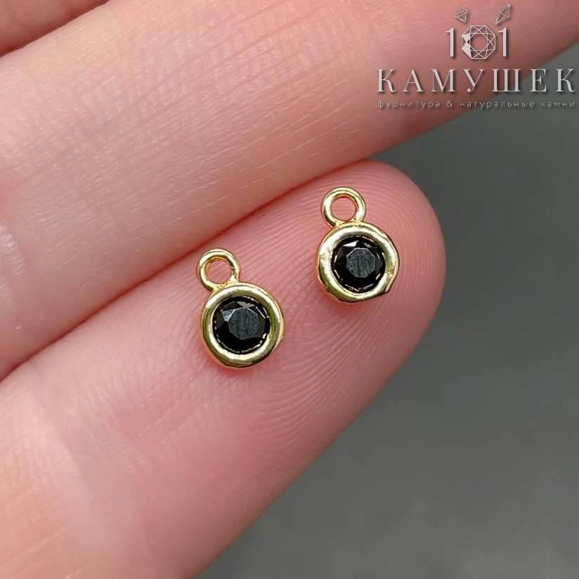 Подвеска круг черный циркон мини, цвет золото 4 мм