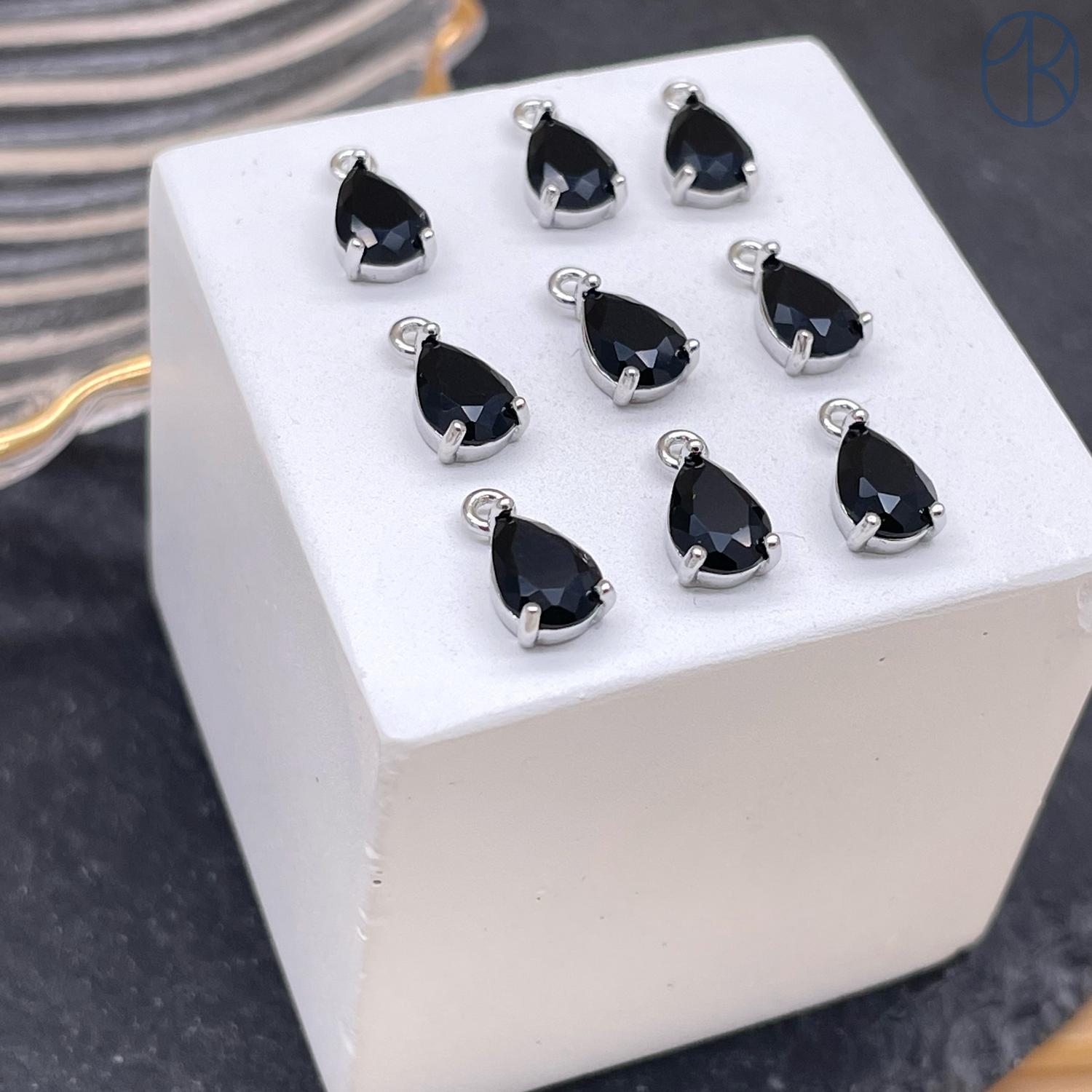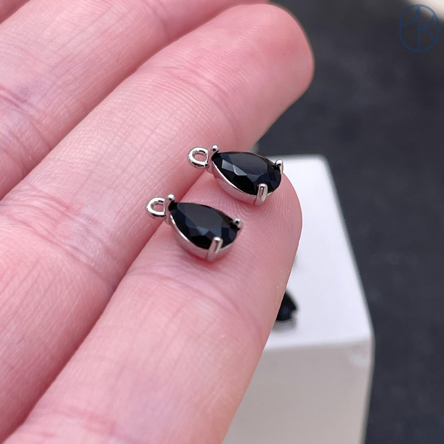 Подвеска капля черный циркон, цвет серебро 7х4 м