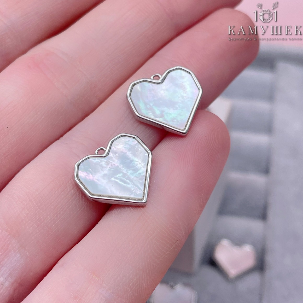 Подвеска сердце белый перламутр, цвет серебро 13х14 мм