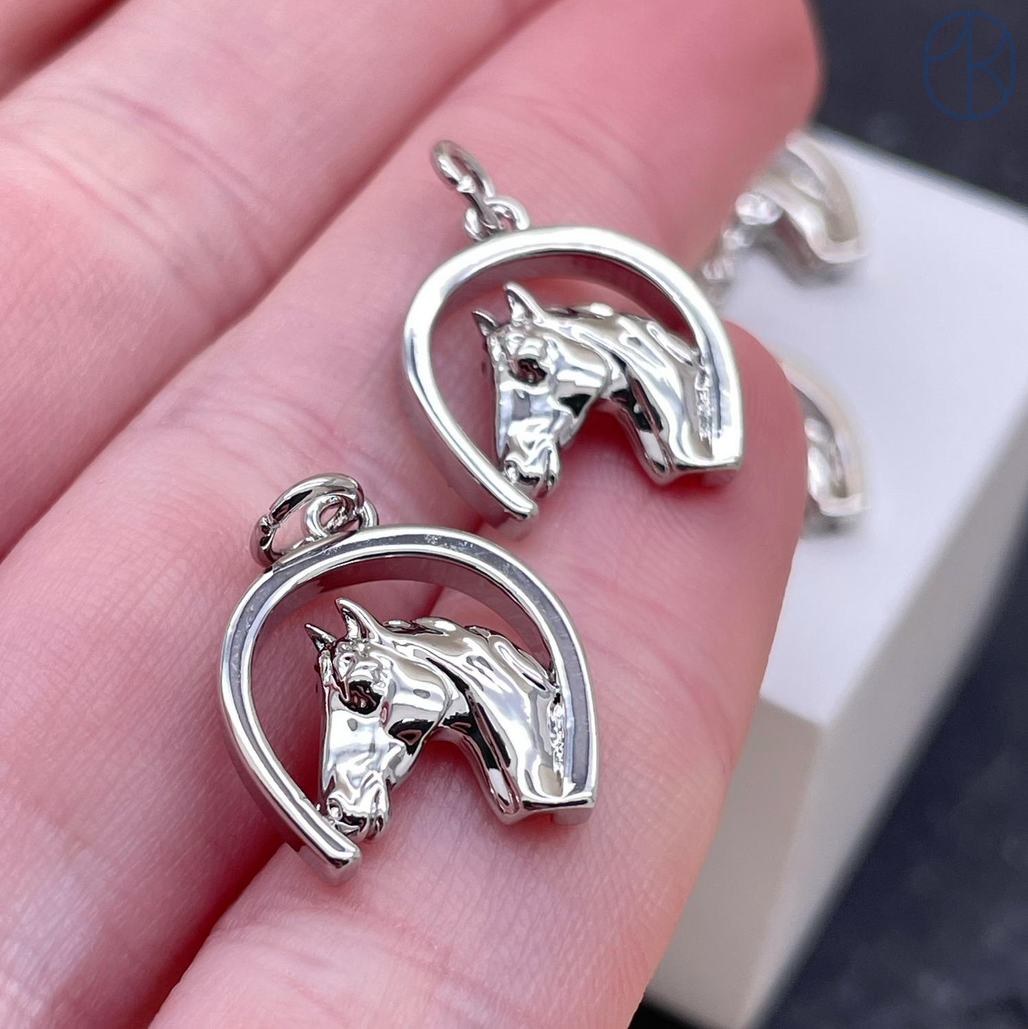 Подвеска лошадь подкова, цвет серебро 14х14 мм