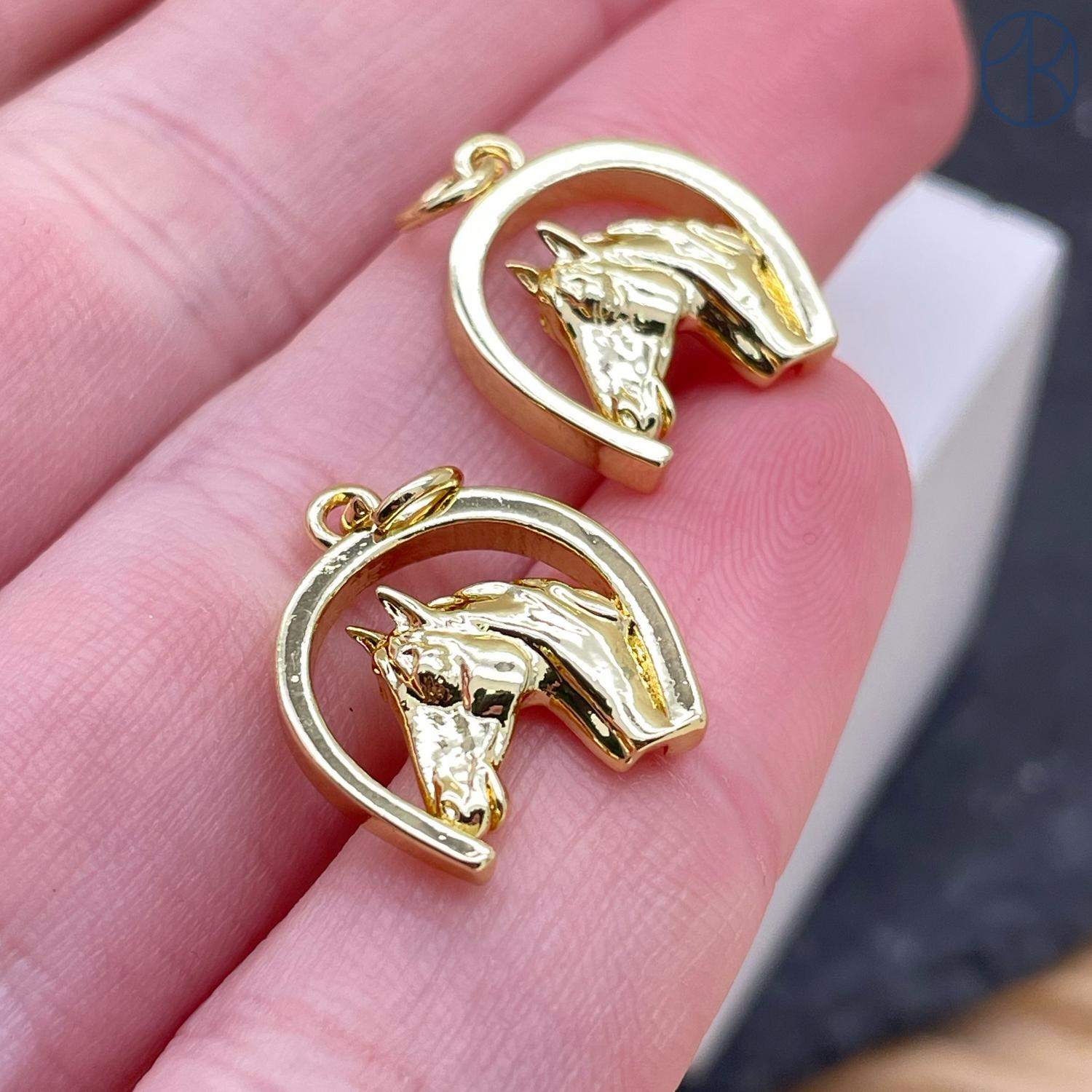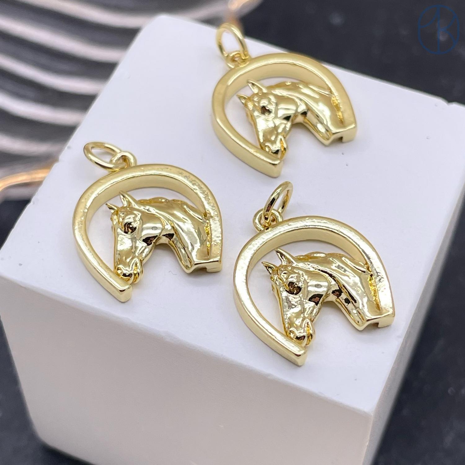 Подвеска лошадь подкова, цвет золото 14х14 мм