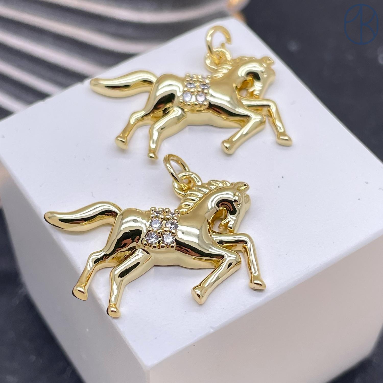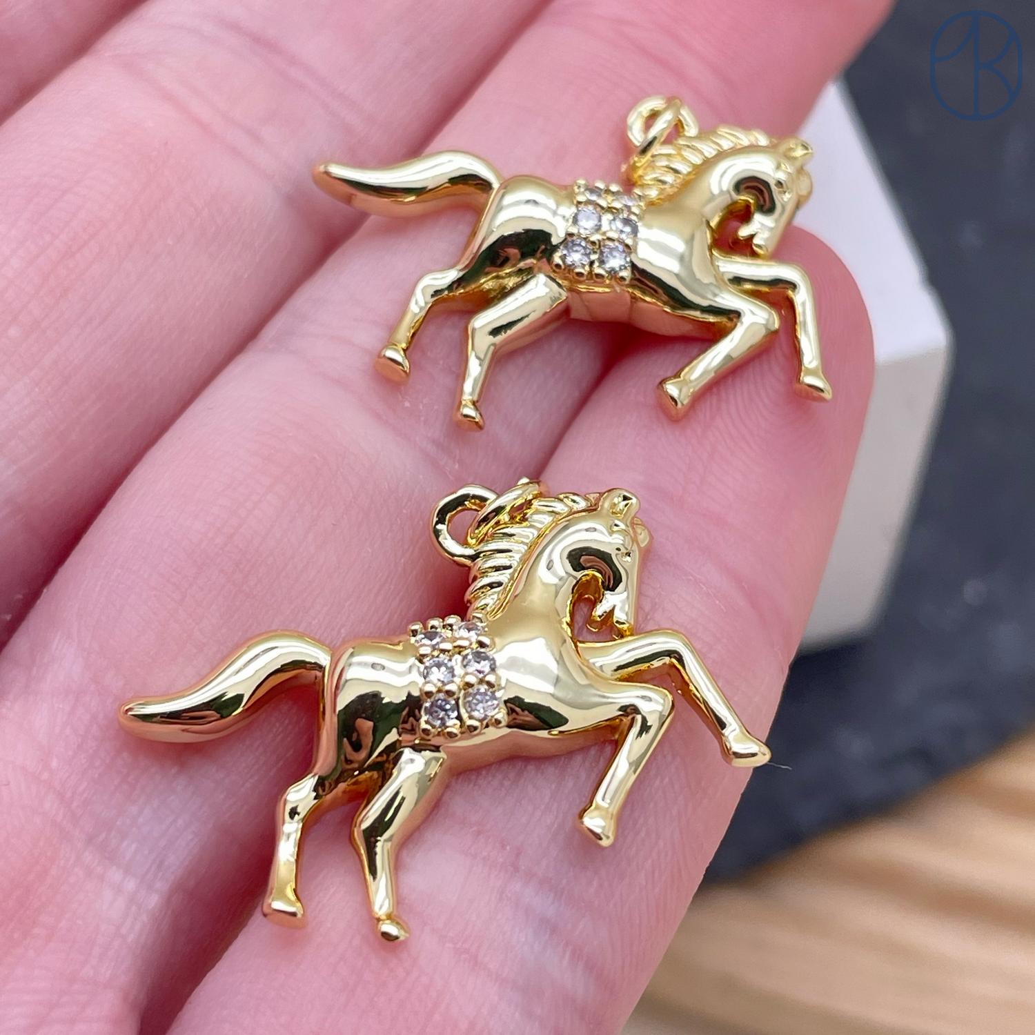 Подвеска лошадь цирконы, цвет золото 24х20 мм