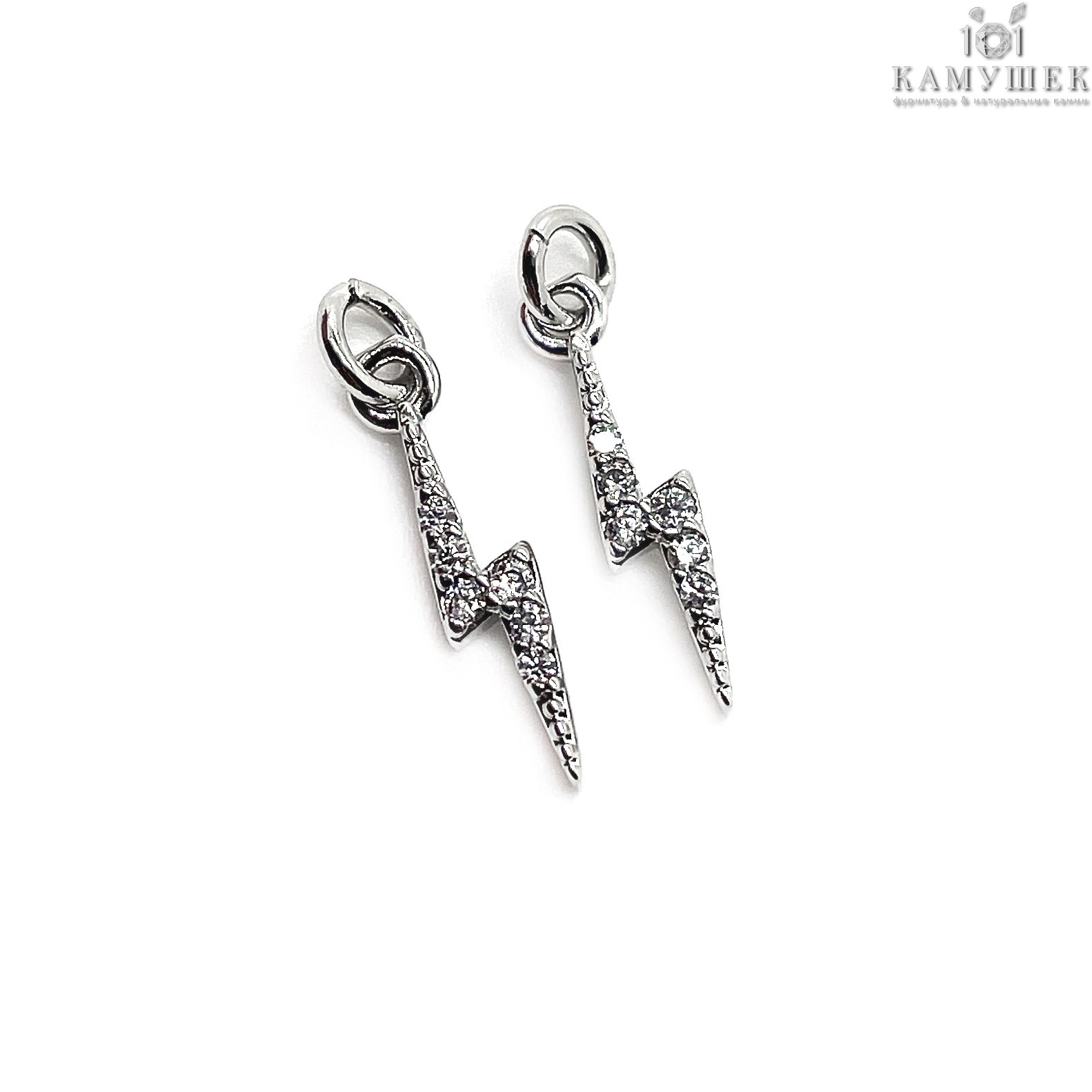 Подвеска Молния стразы мини, цвет серебро 15х3 мм