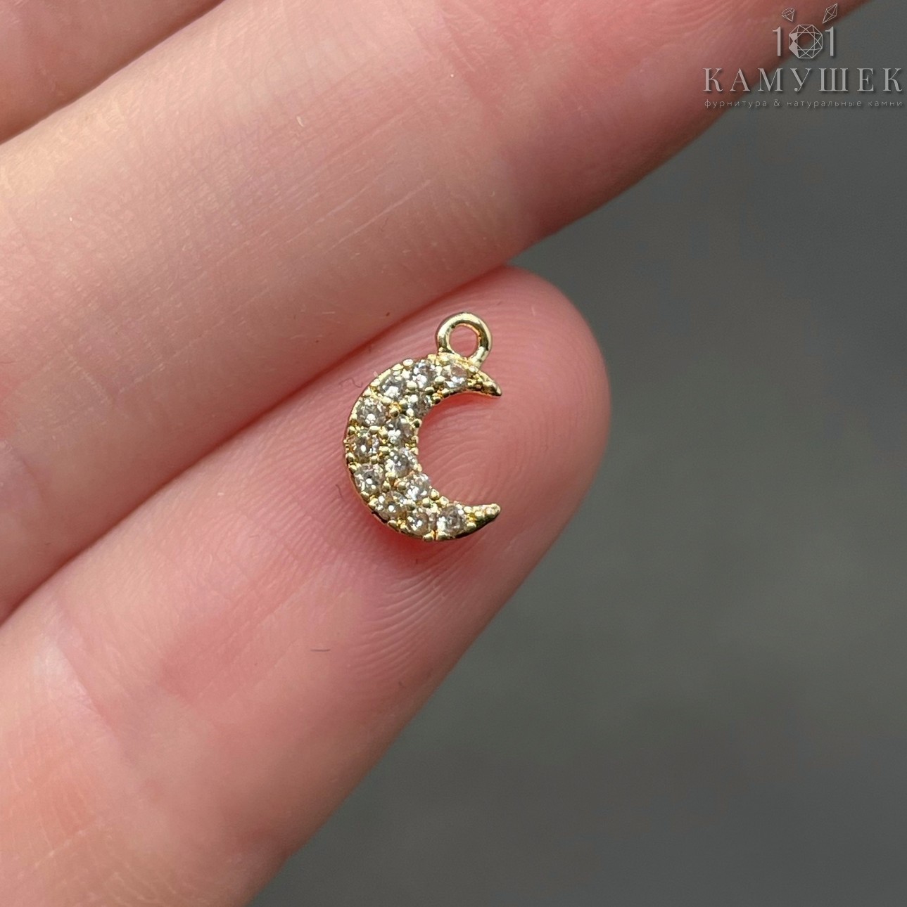 Подвеска полумесяц мини с цирконами, цвет золото 9х7 мм