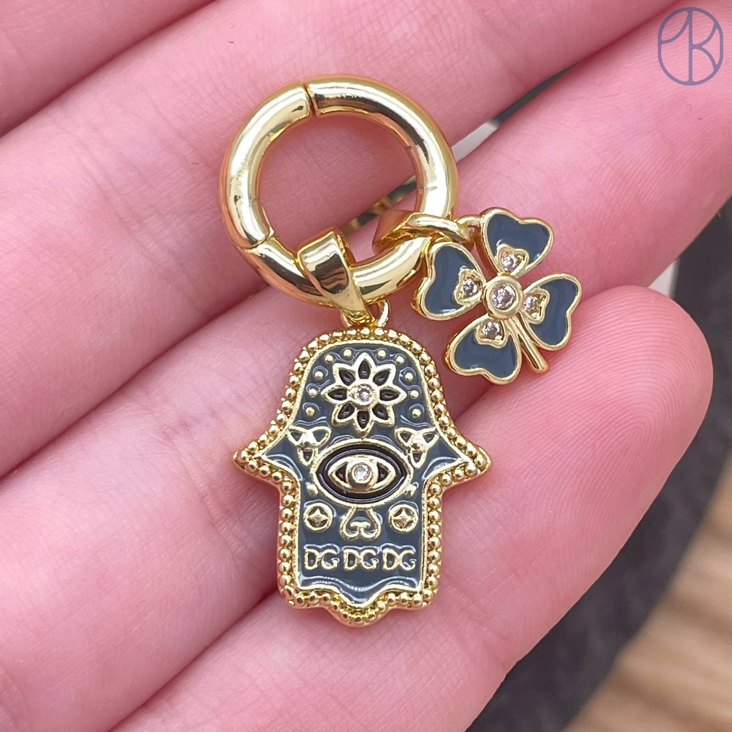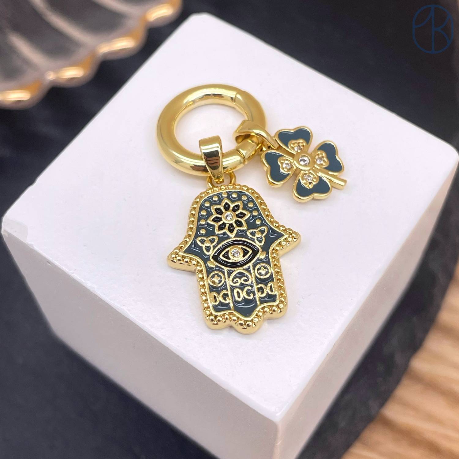 Подвеска рука Фатимы (Хамса) и клевер, цвет золото 18 мм