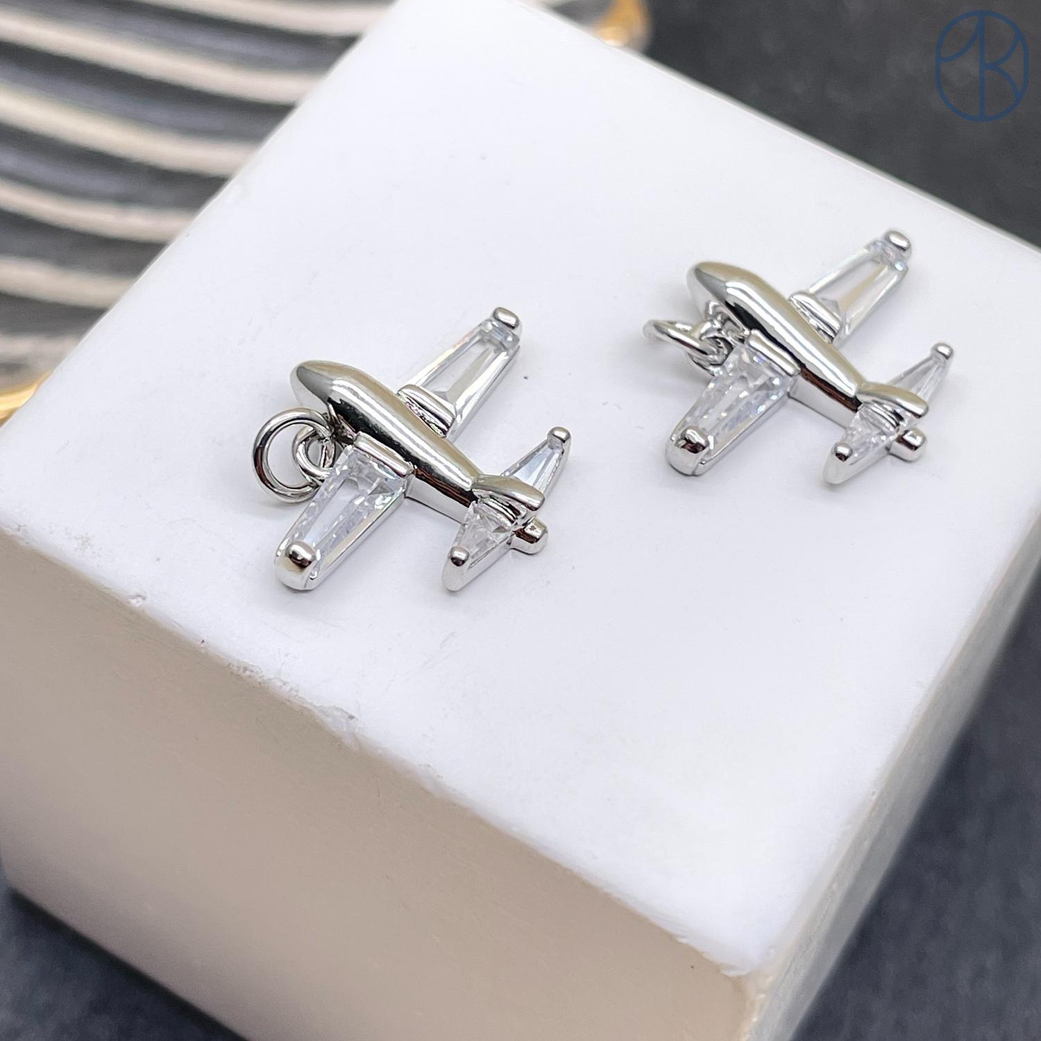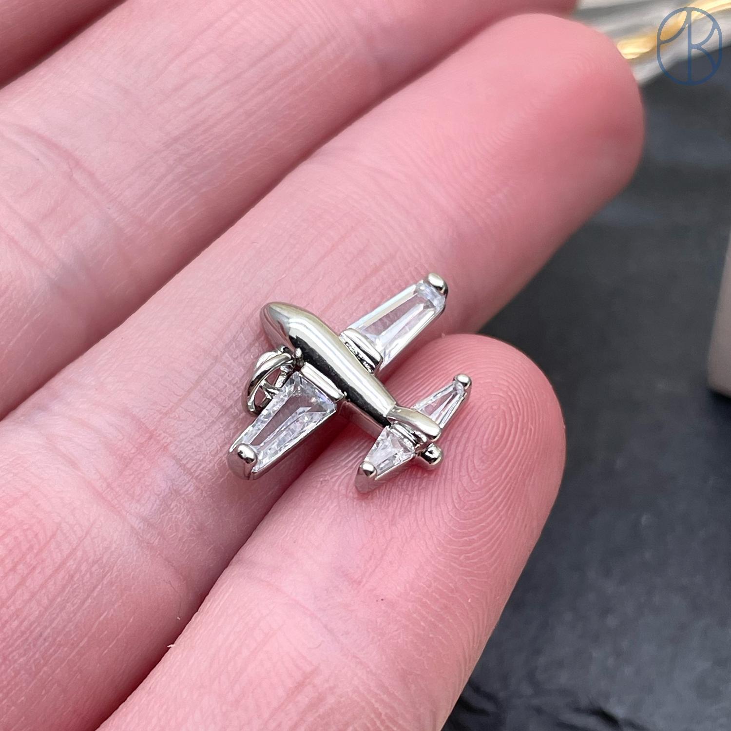 Подвеска Самолет цирконы, цвет серебро 13х16