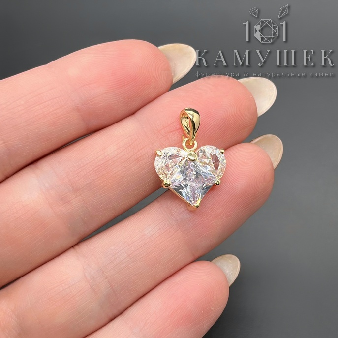 Подвеска сердце цирконы, цвет золото 14,5х14 мм