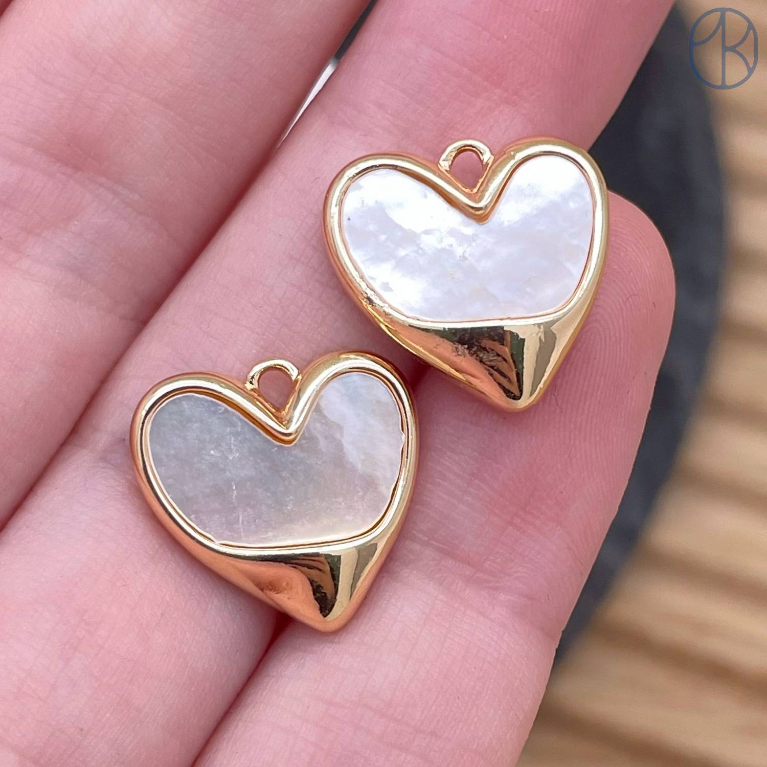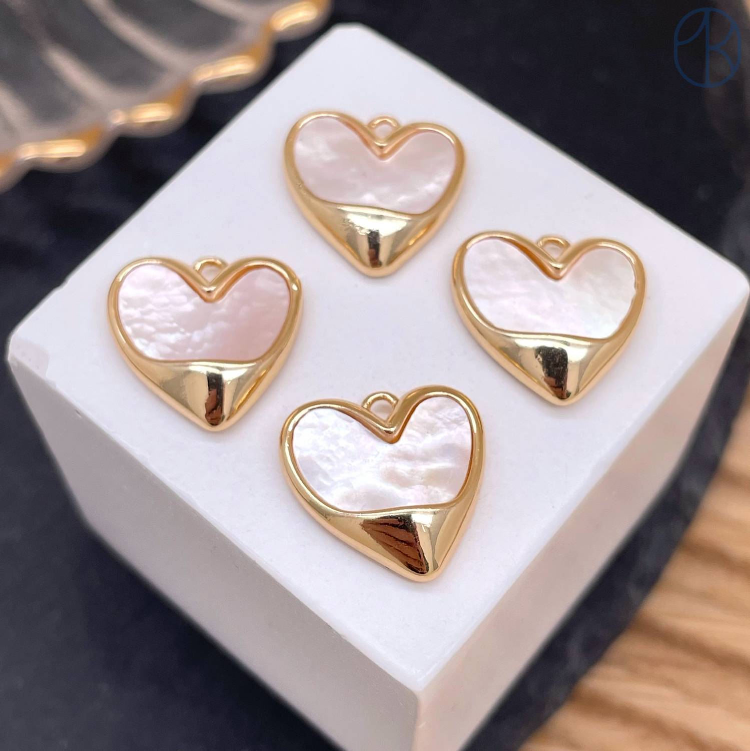 Подвеска сердце перламутр, цвет золото 14 мм