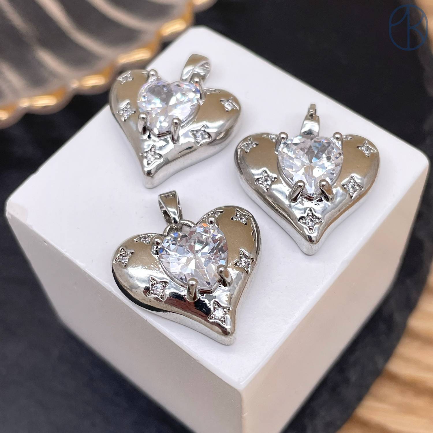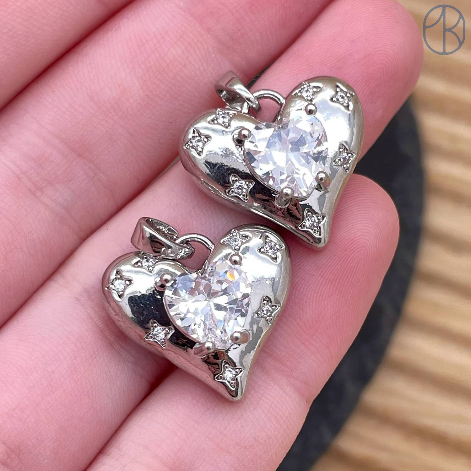 Подвеска сердце циркон, цвет серебро 18 мм