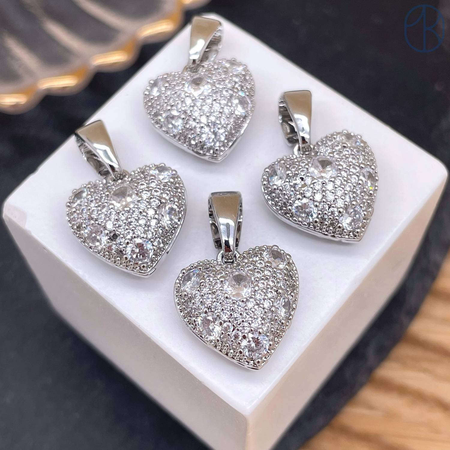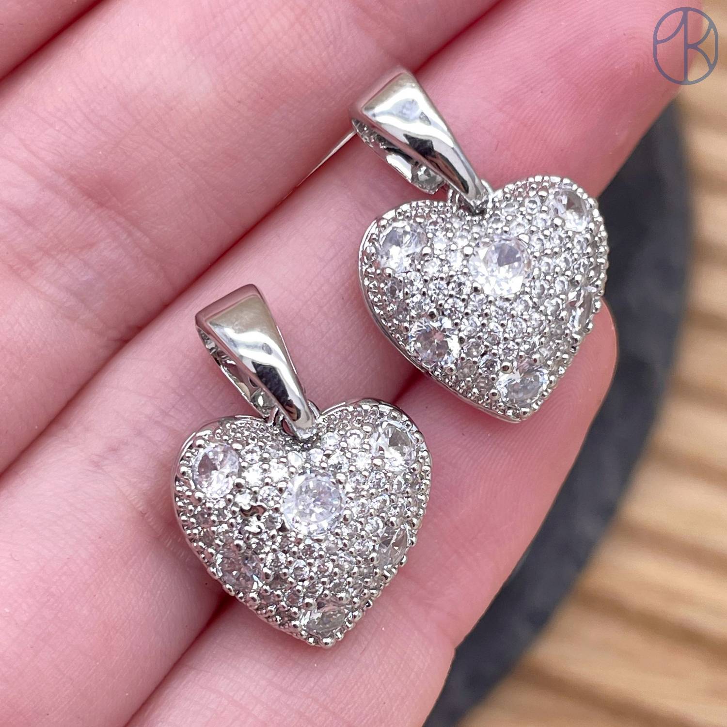 Подвеска сердце цирконы, цвет серебро 14 мм