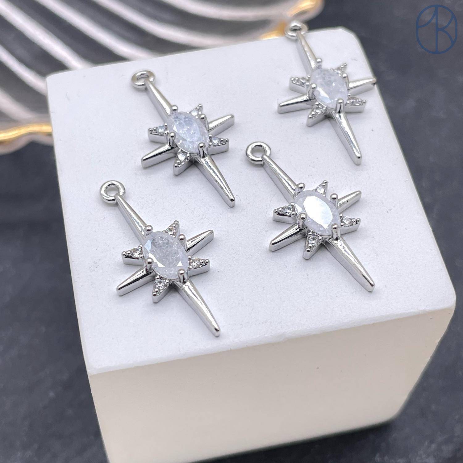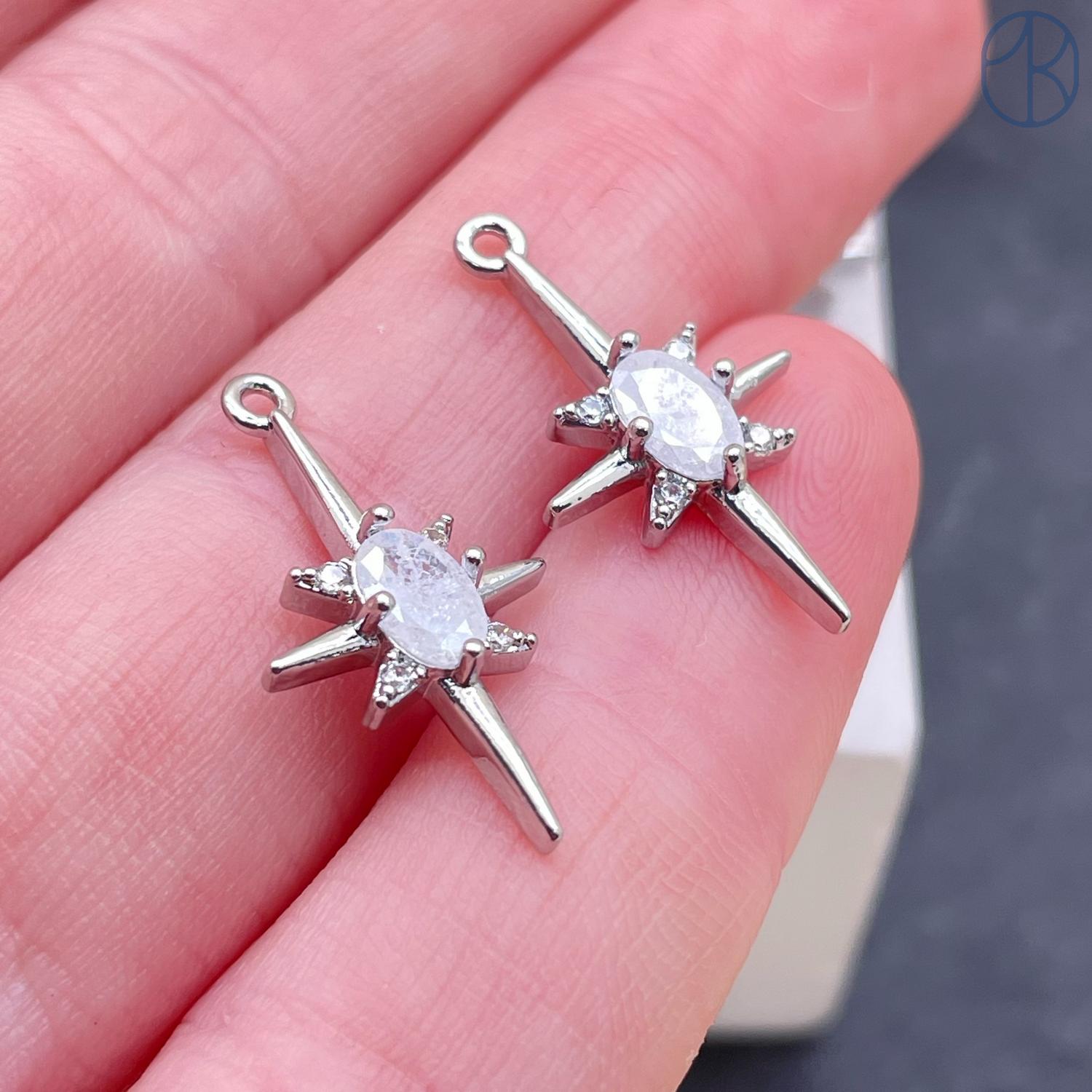 Подвеска серверная звезда циркон, цвет серебро 21х12 мм