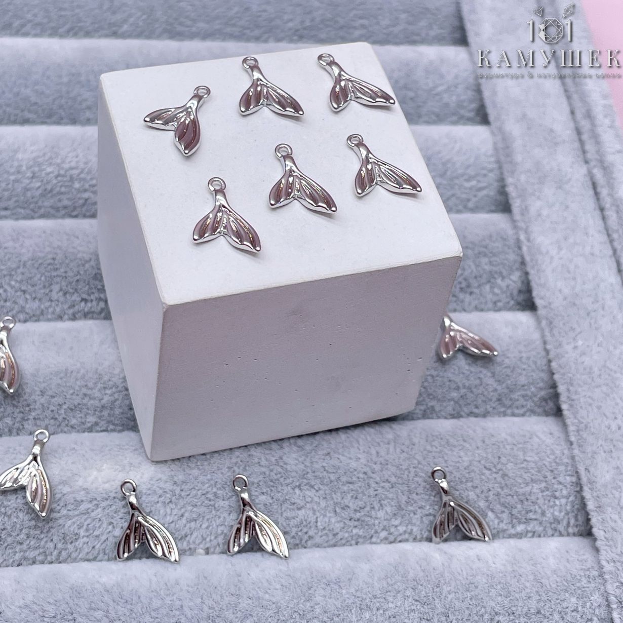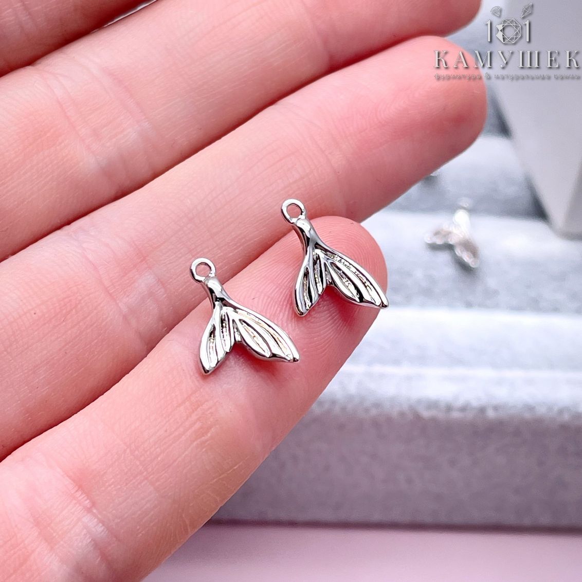 Подвеска хвост кита, цвет серебро 11х8 мм