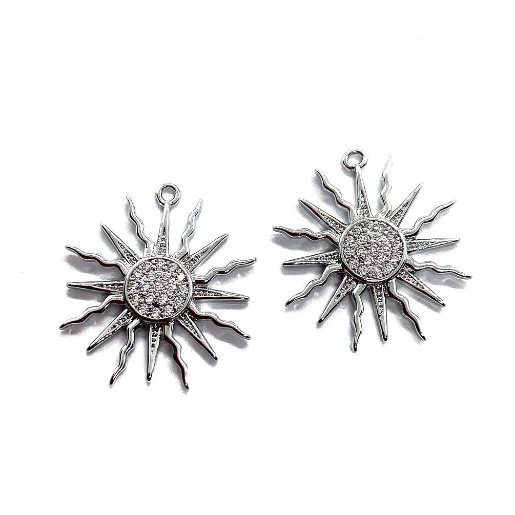 Подвеска солцне цирконы, цвет серебро 17х16 мм