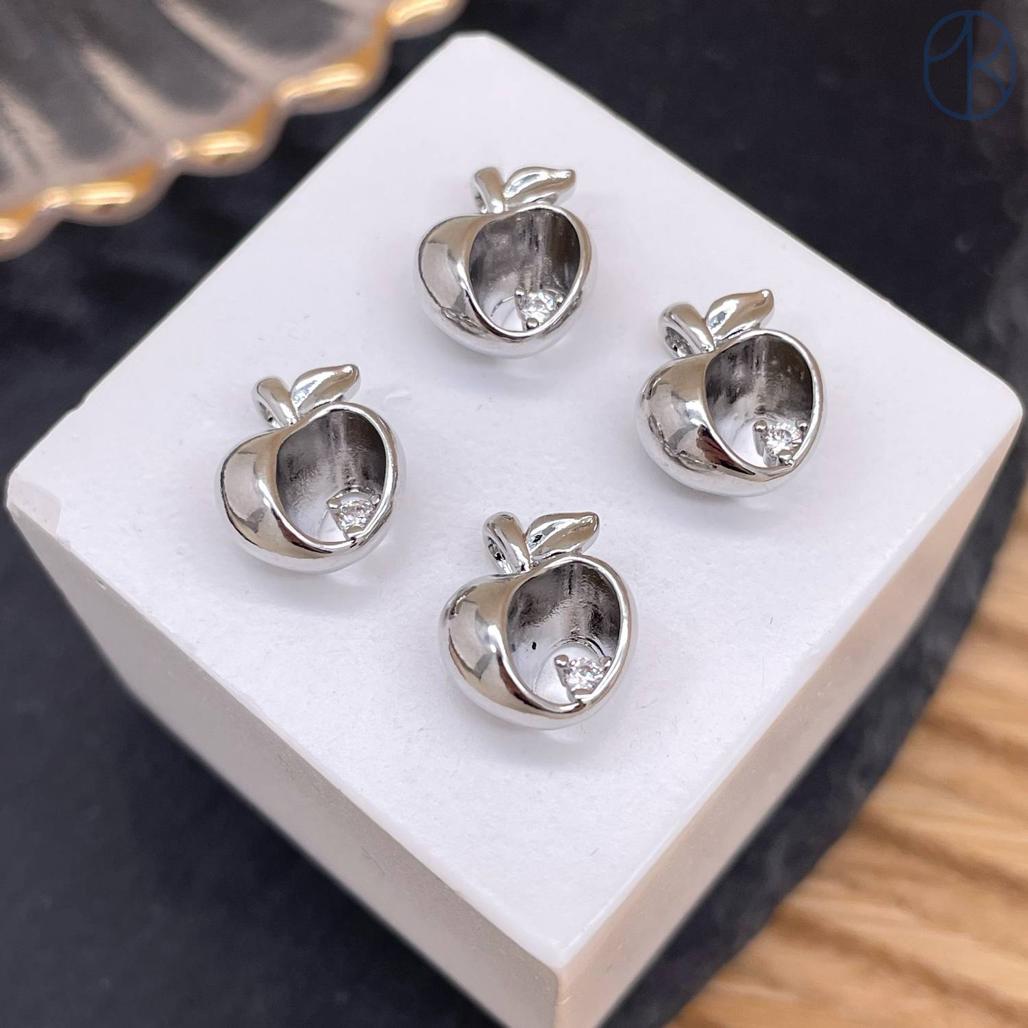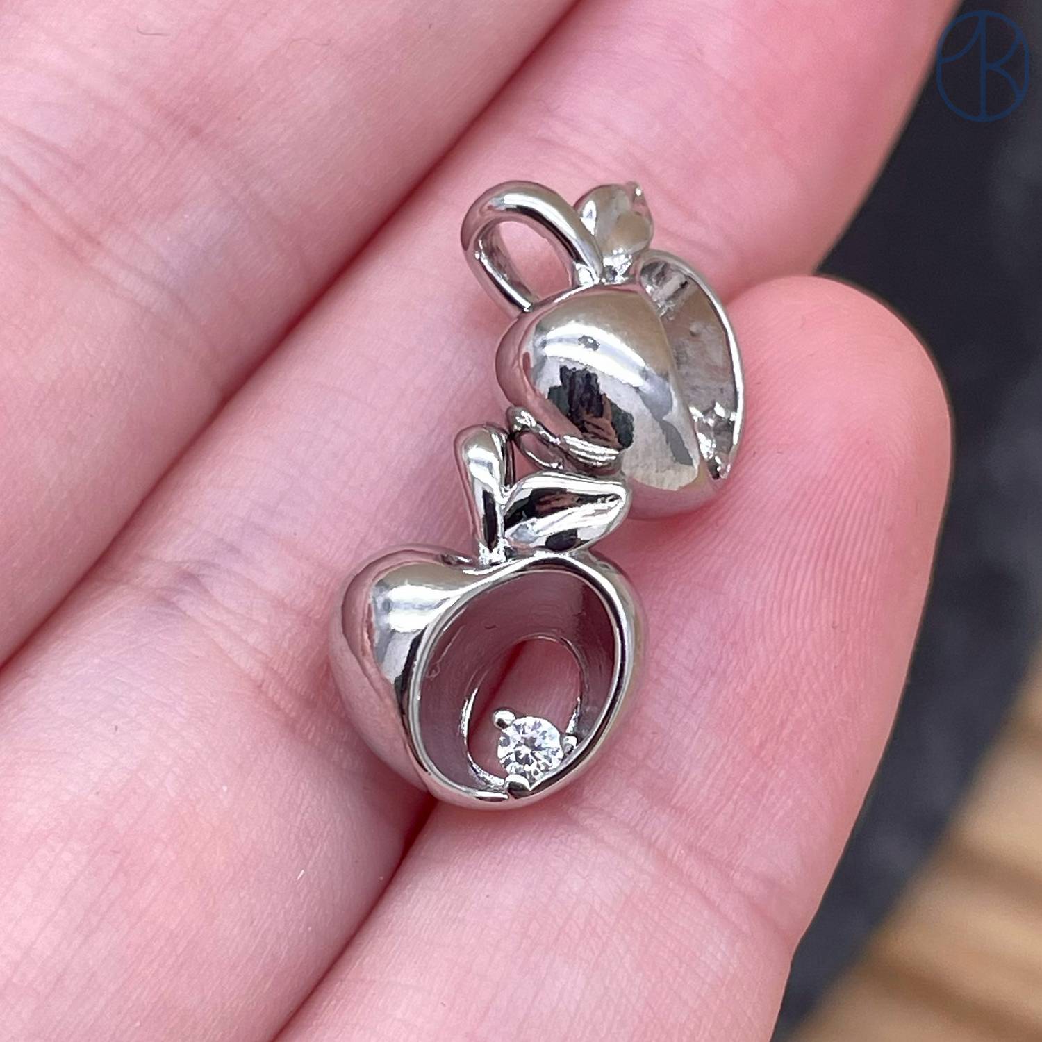 Подвеска яблоко циркон, цвет серебро 11 мм