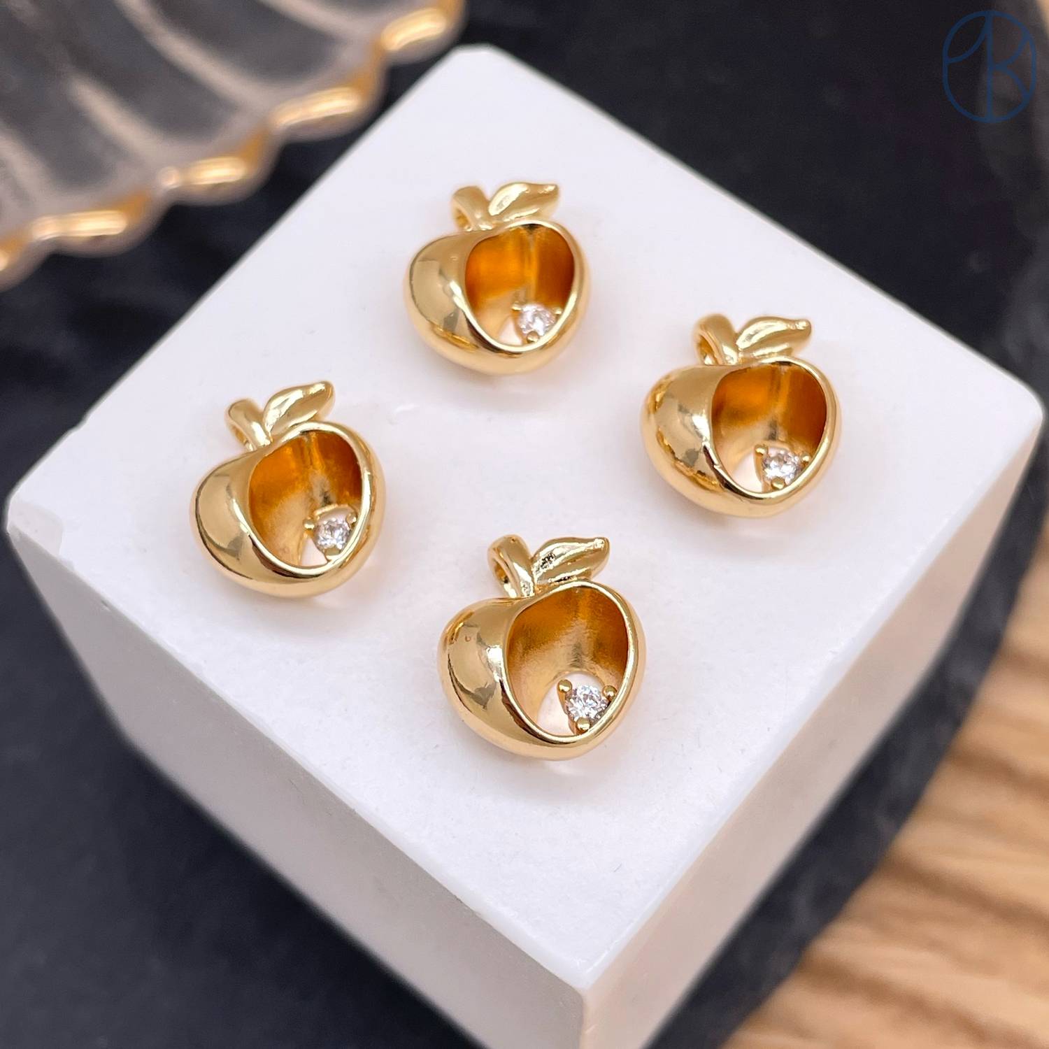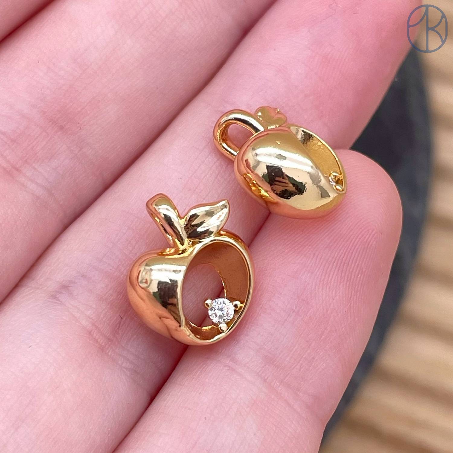Подвеска яблоко циркон, цвет золото 11 мм