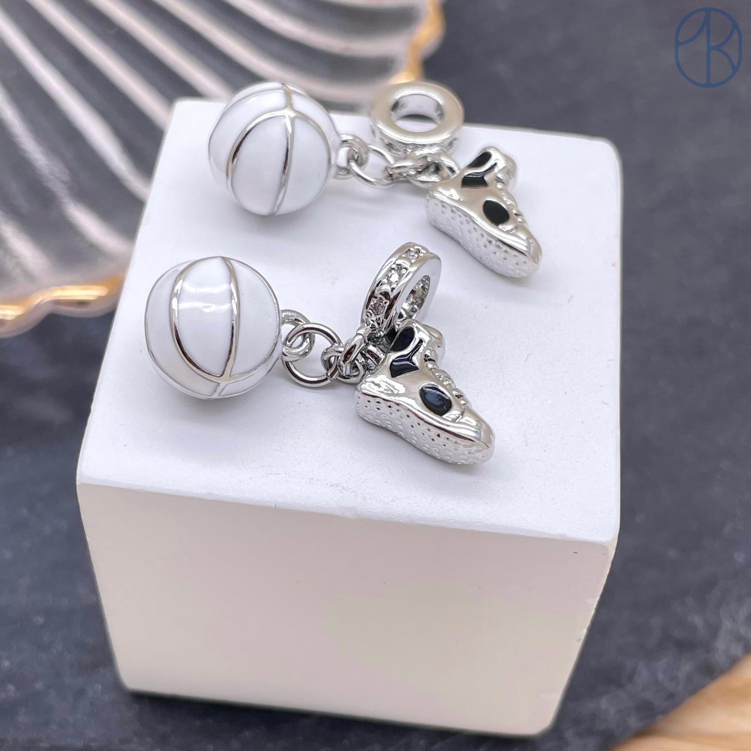 Подвеска баскетбольный мяч и кроссовок, цвет серебро 12 мм