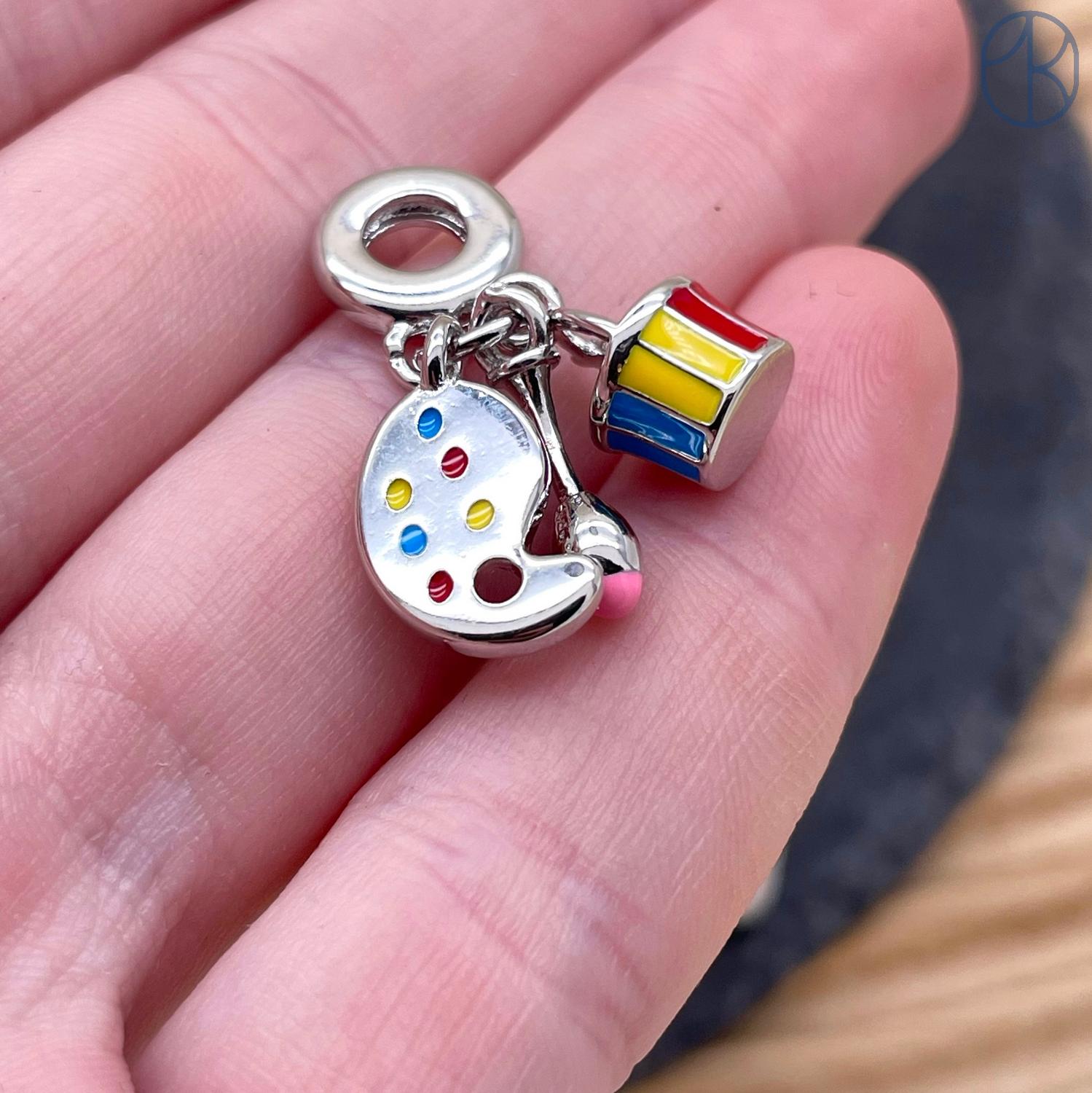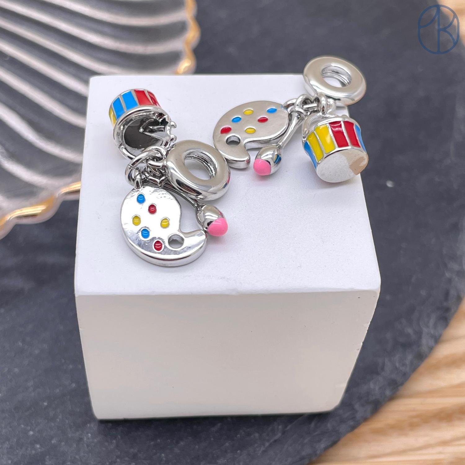 Подвеска краски, кисть и непроливайка, цвет серебро 14 мм