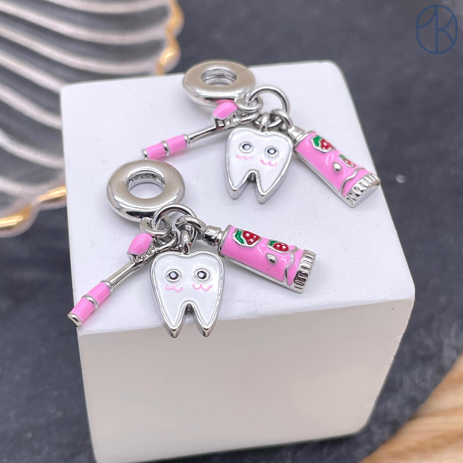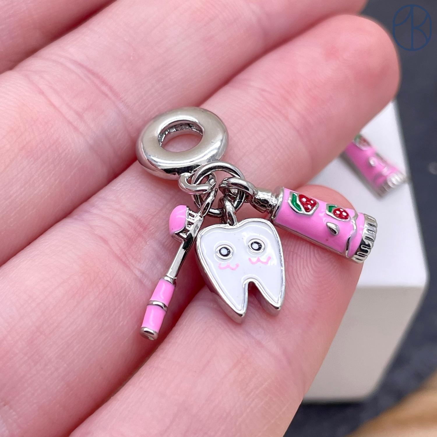 Подвеска зуб, щетка и паста, цвет серебро 17 мм