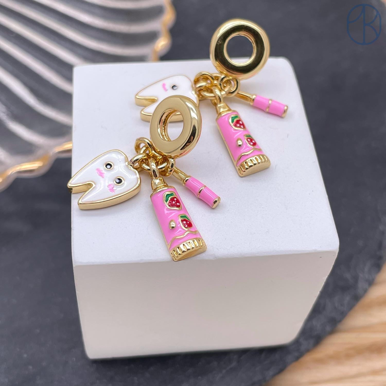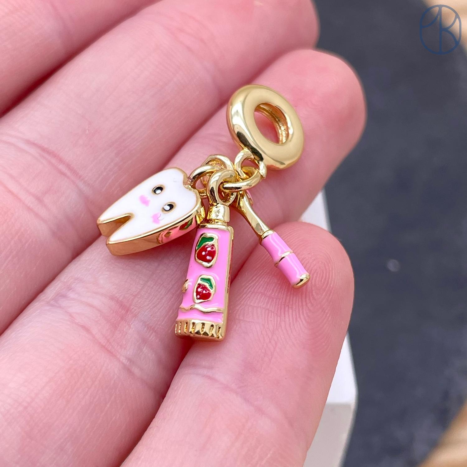 Подвеска зуб, щетка и паста, цвет золото 17 мм