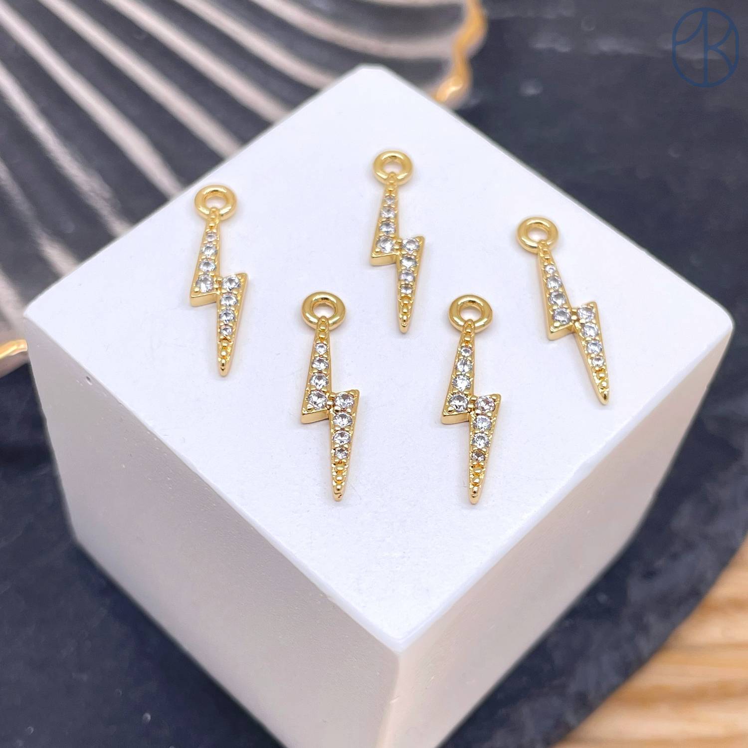 Подвеска молния цирконы, цвет золото 15х3 мм
