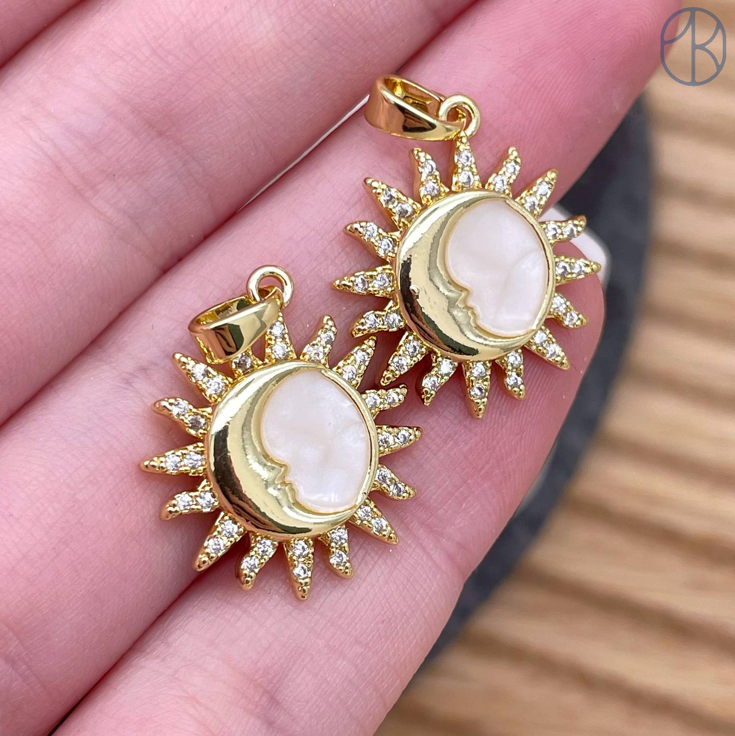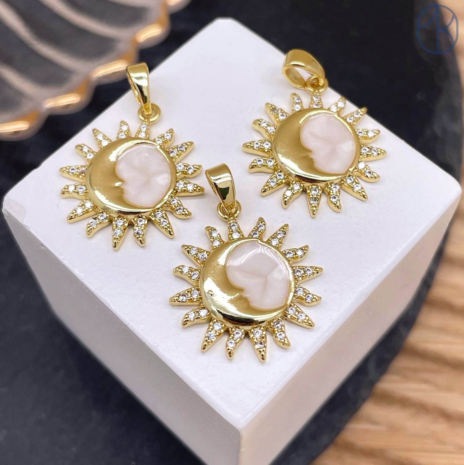 Подвеска солнце и луна эмаль, цвет золото 17 мм