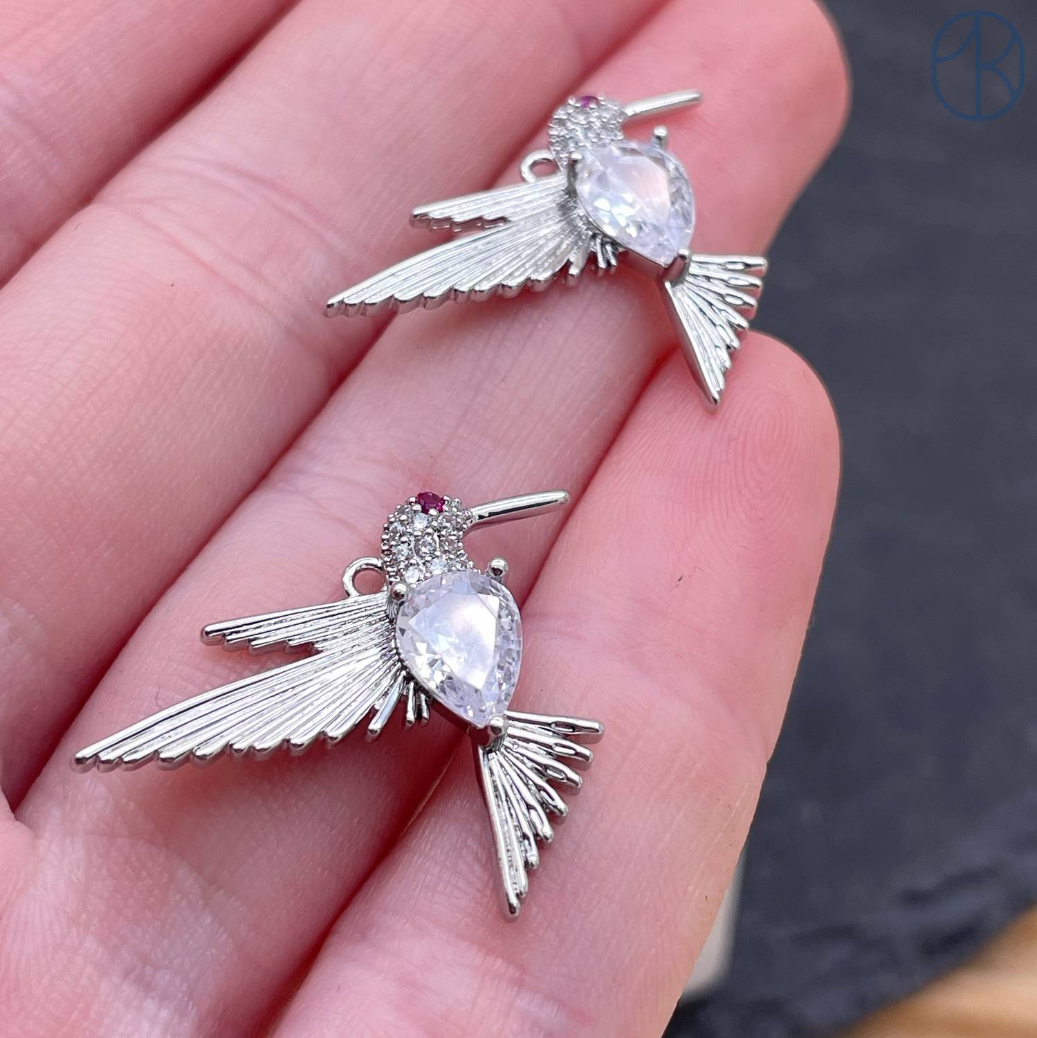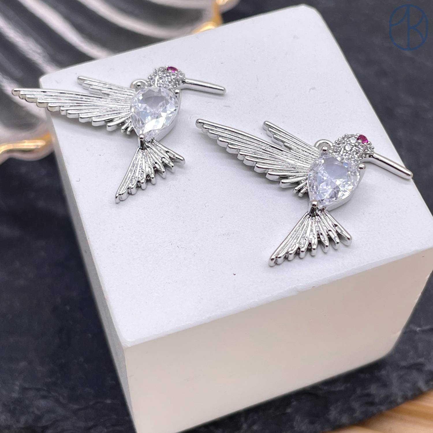 Подвеска Колибри циркон, цвет серебро 20х28 мм