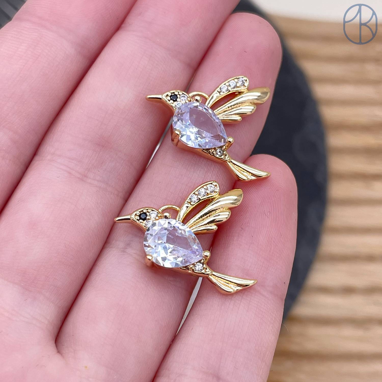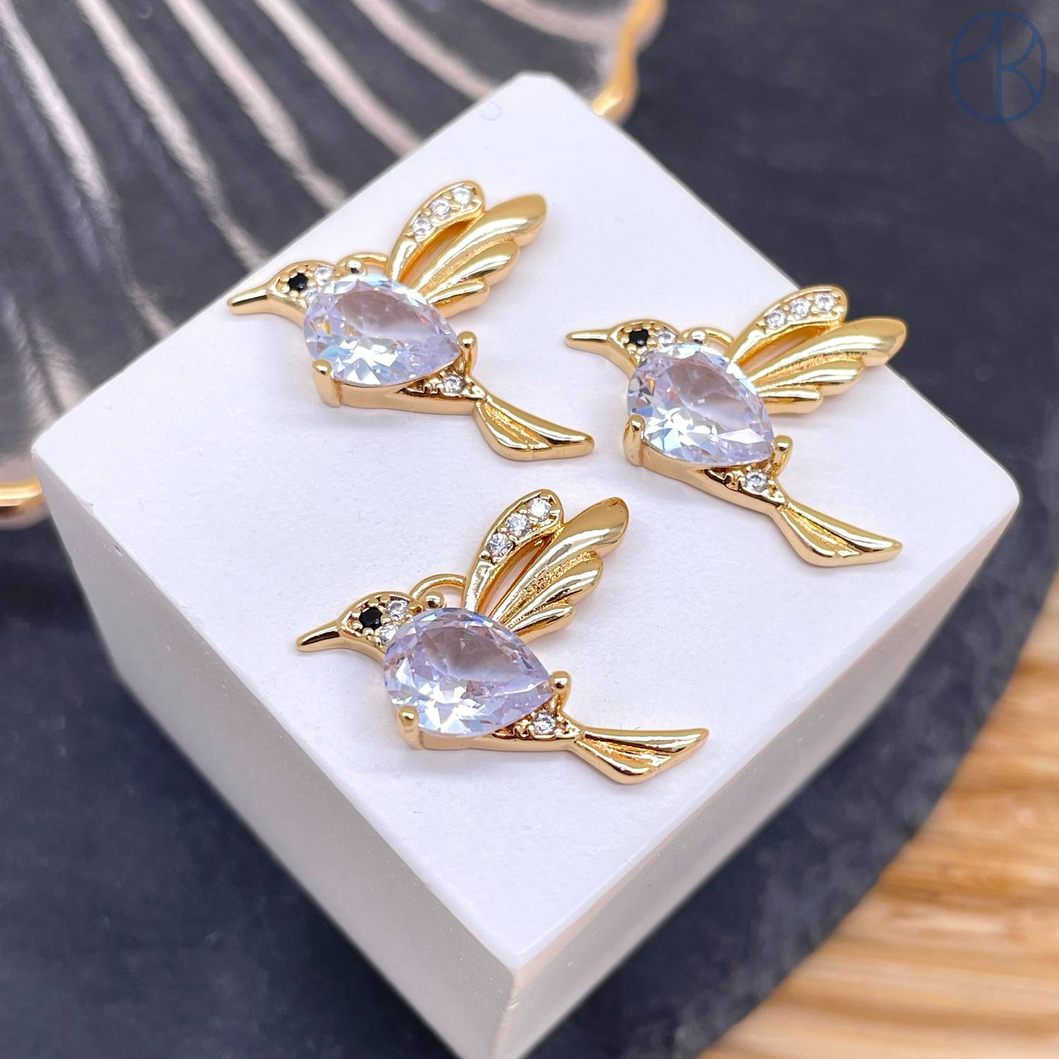 Подвеска птица цирконы, цвет золото 16 мм