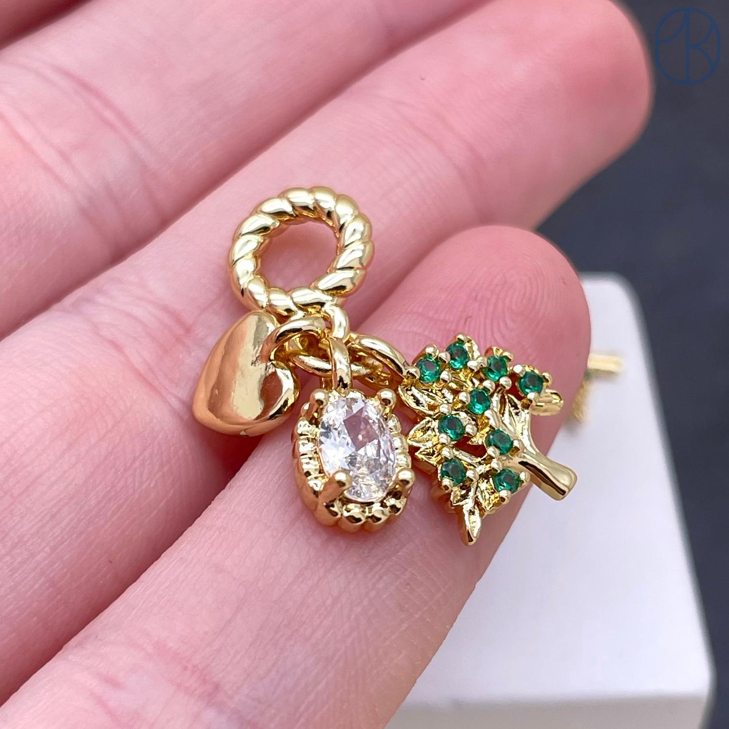 Подвеска дерево, овал и сердце, цвет золото 13 мм