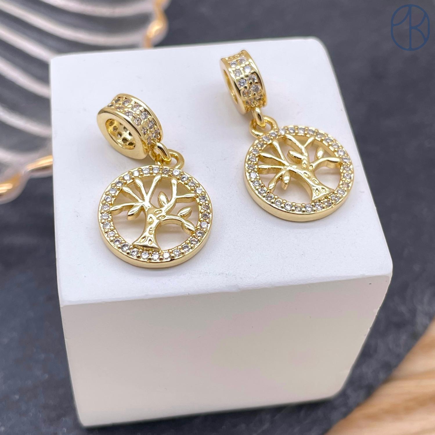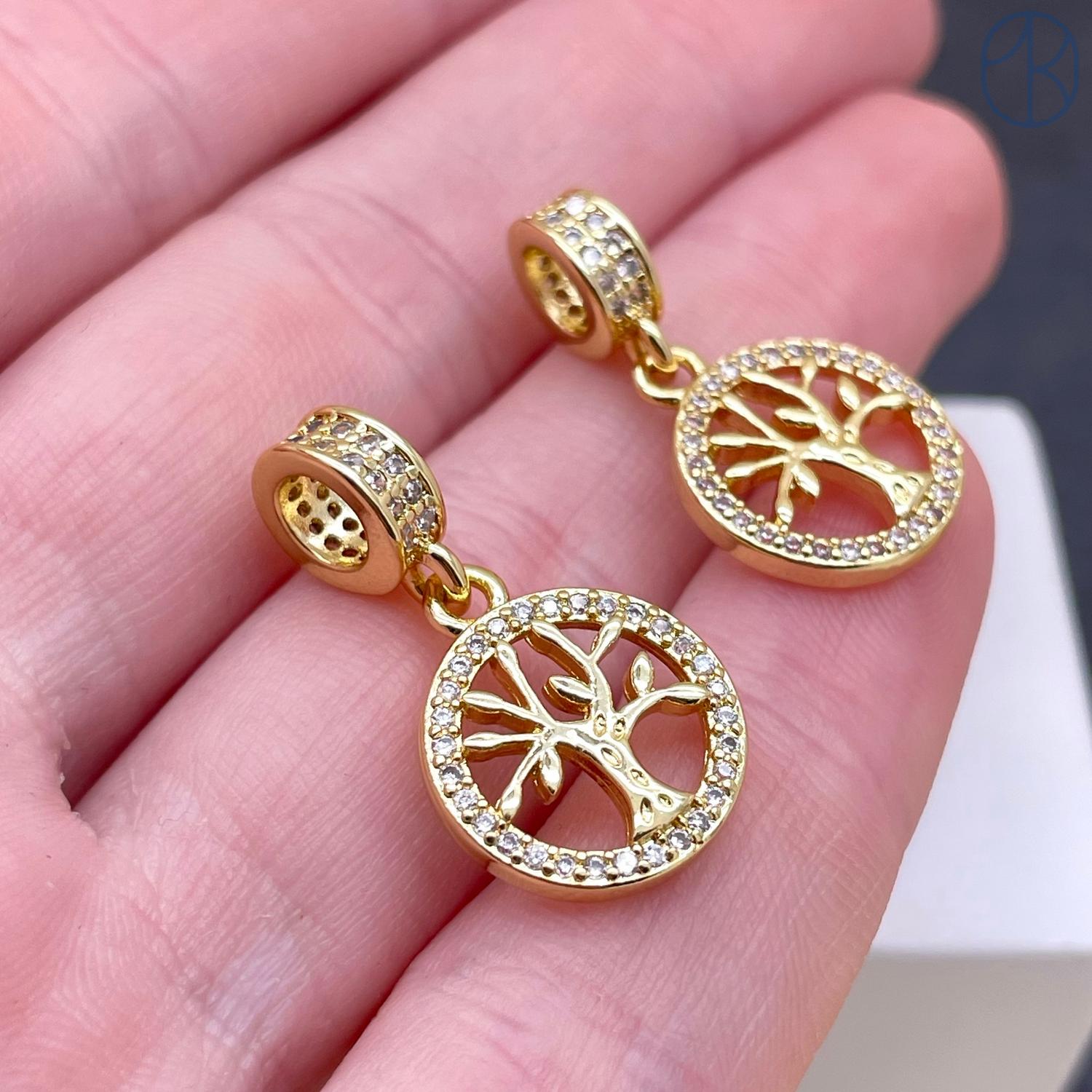 Подвеска дерево цирконы, цвет золото 14 мм