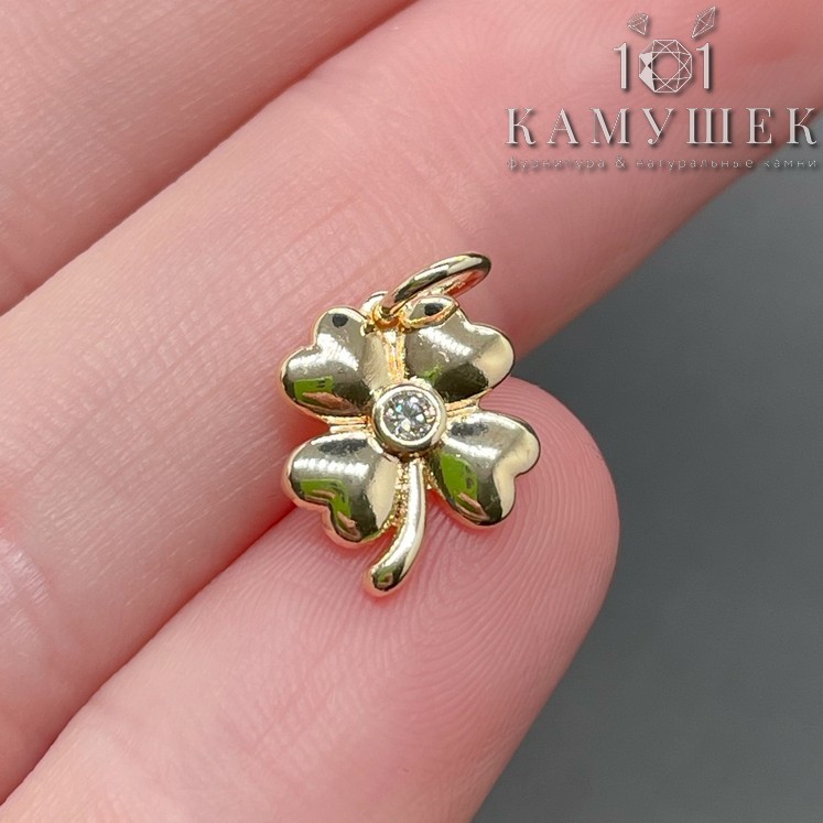 Подвеска клевер с цирконом, цвет золото 10x12 мм