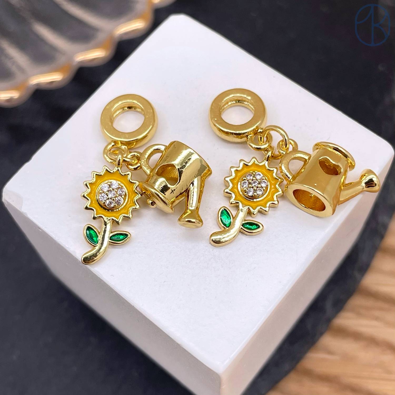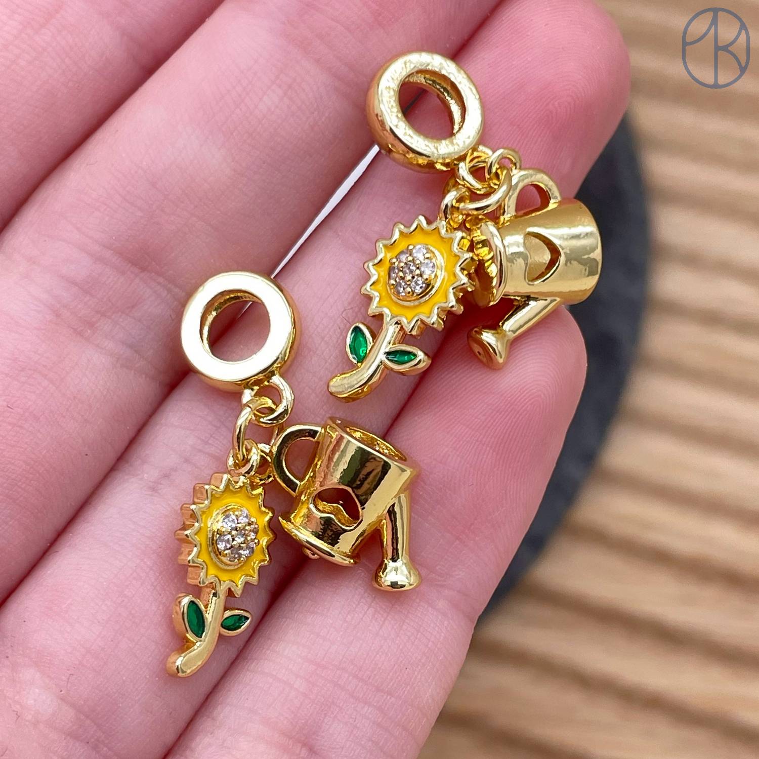 Подвеска подсолнух и лейка, цвет золото 15 мм
