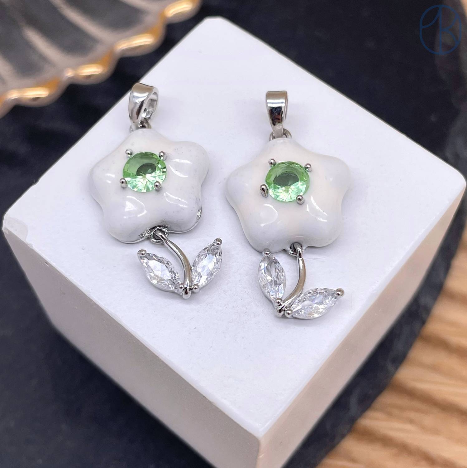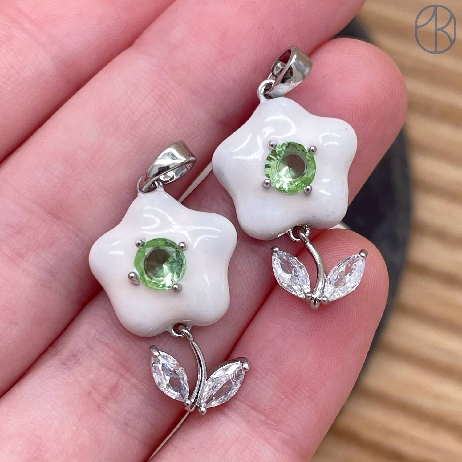 Подвеска цветок белая эмаль, цвет серебро 24 мм